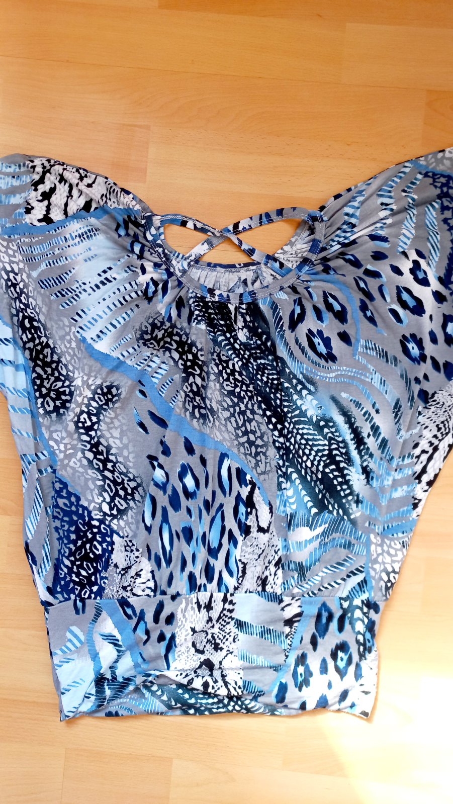 Netradičný kúsok s netopierimi rukávmi. Vzadu prekríženie. ZN: YOUYOU. Na štítku je veľkosť XL, no vhodné aj pre S, M, L...