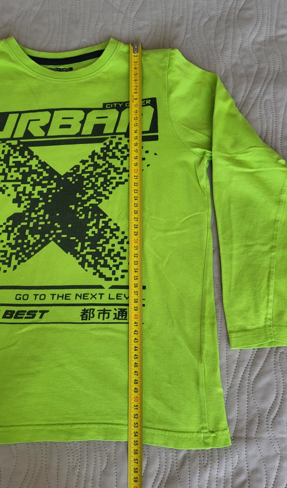Ponúkam na predaj tričko, nosené, stále v peknom stave. Sedí na rozmer 146-152. Lístky odstrihnuté pre pohodlné nosenie. rozmer: dĺžka: 55cm šírka: 39cm rukáv od krku: 56cm