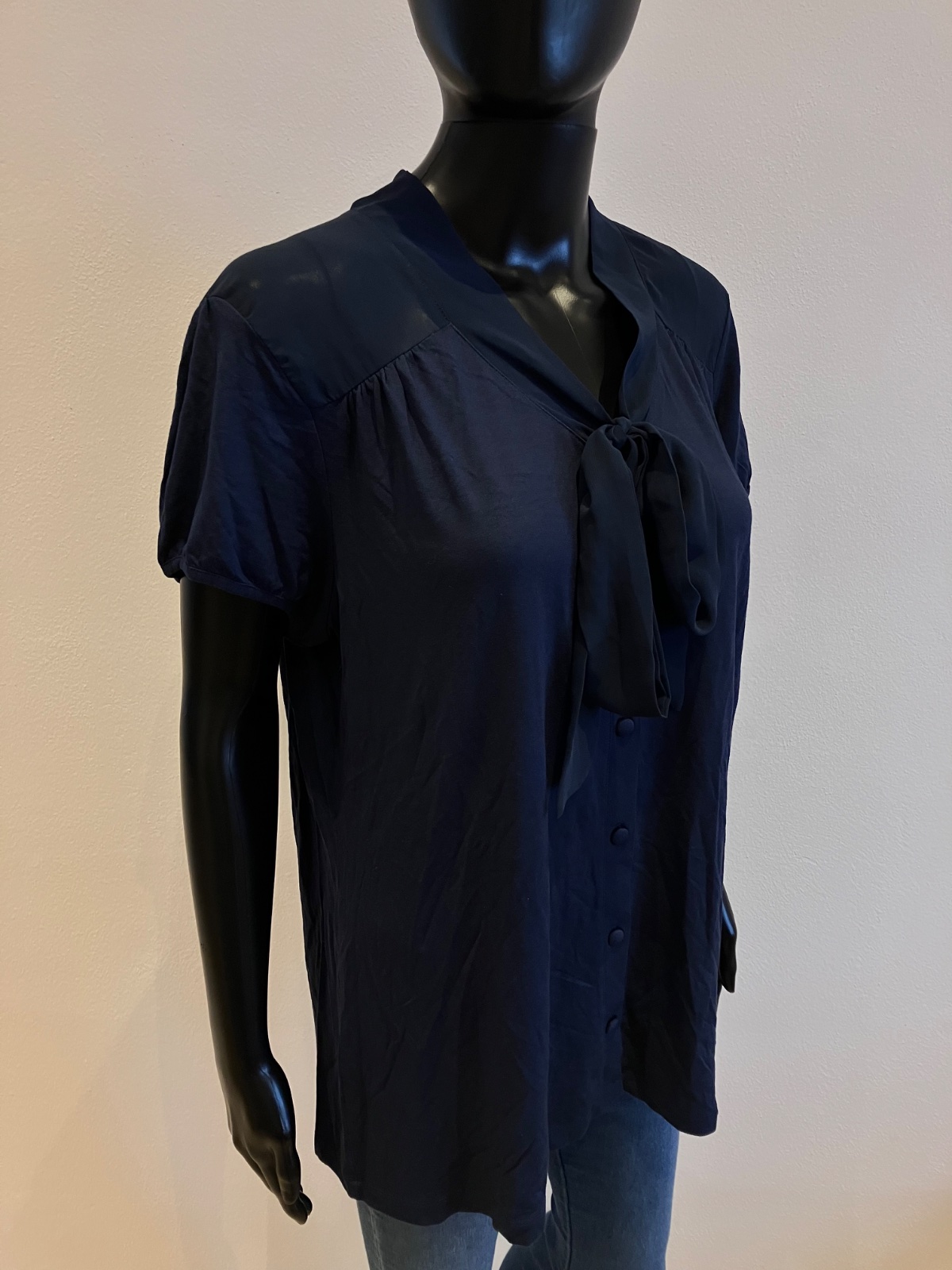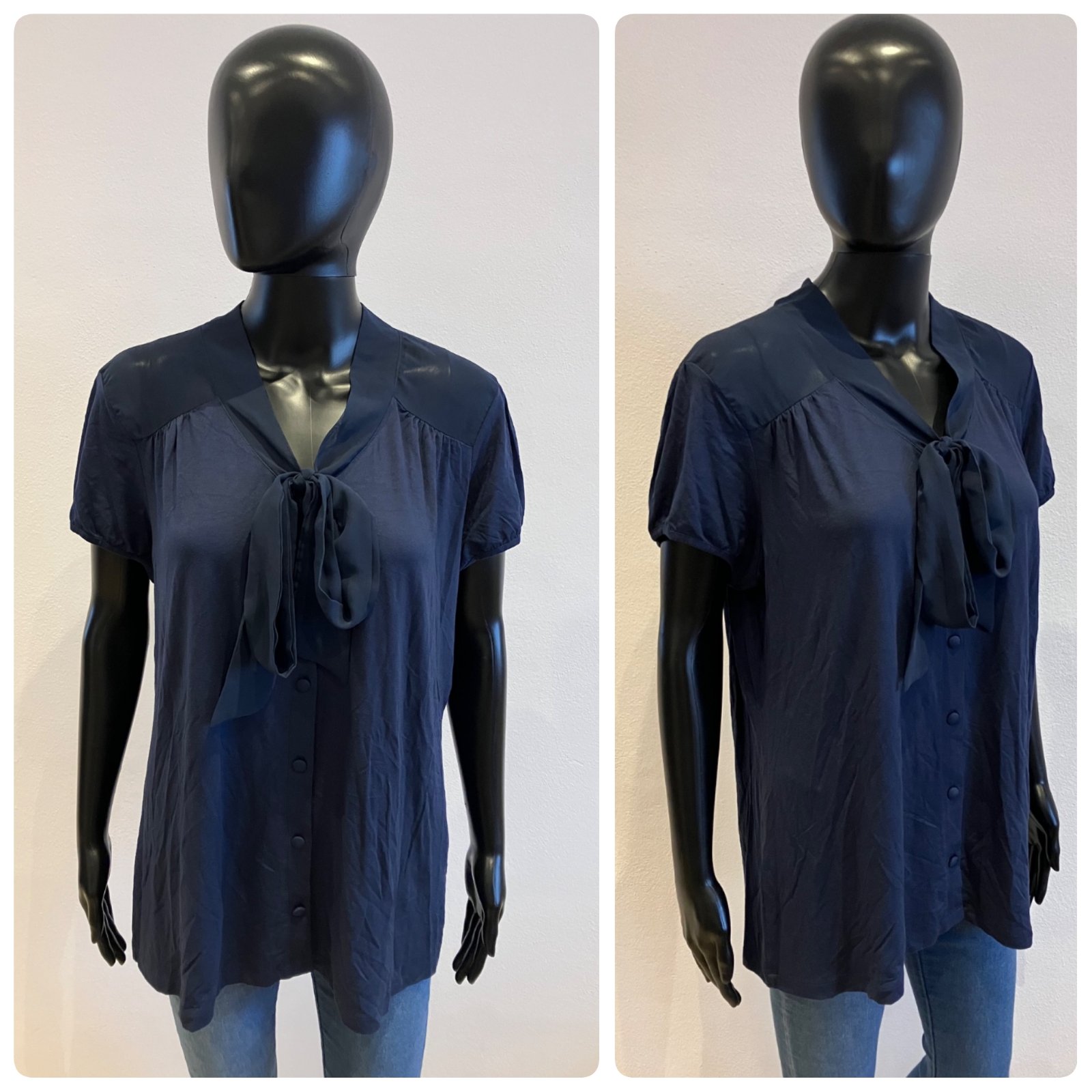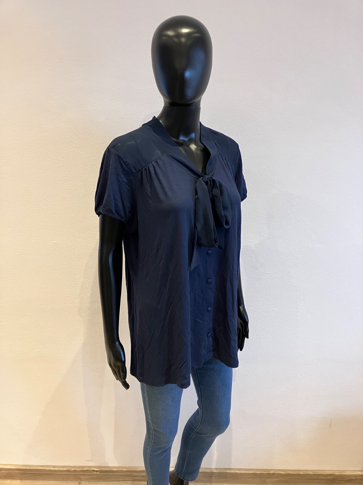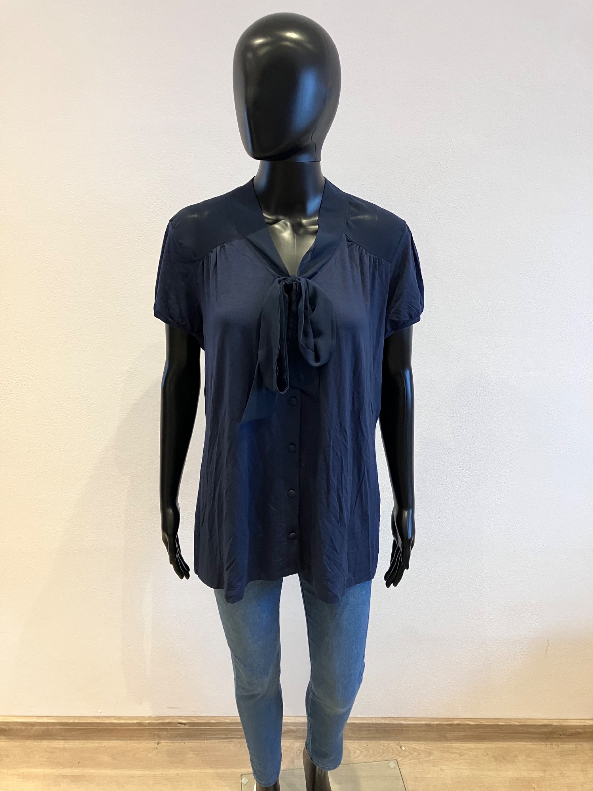 Dámske tričko krátky rukáv s mašličkou, tylom, zapínanie na gombíky, elastické.