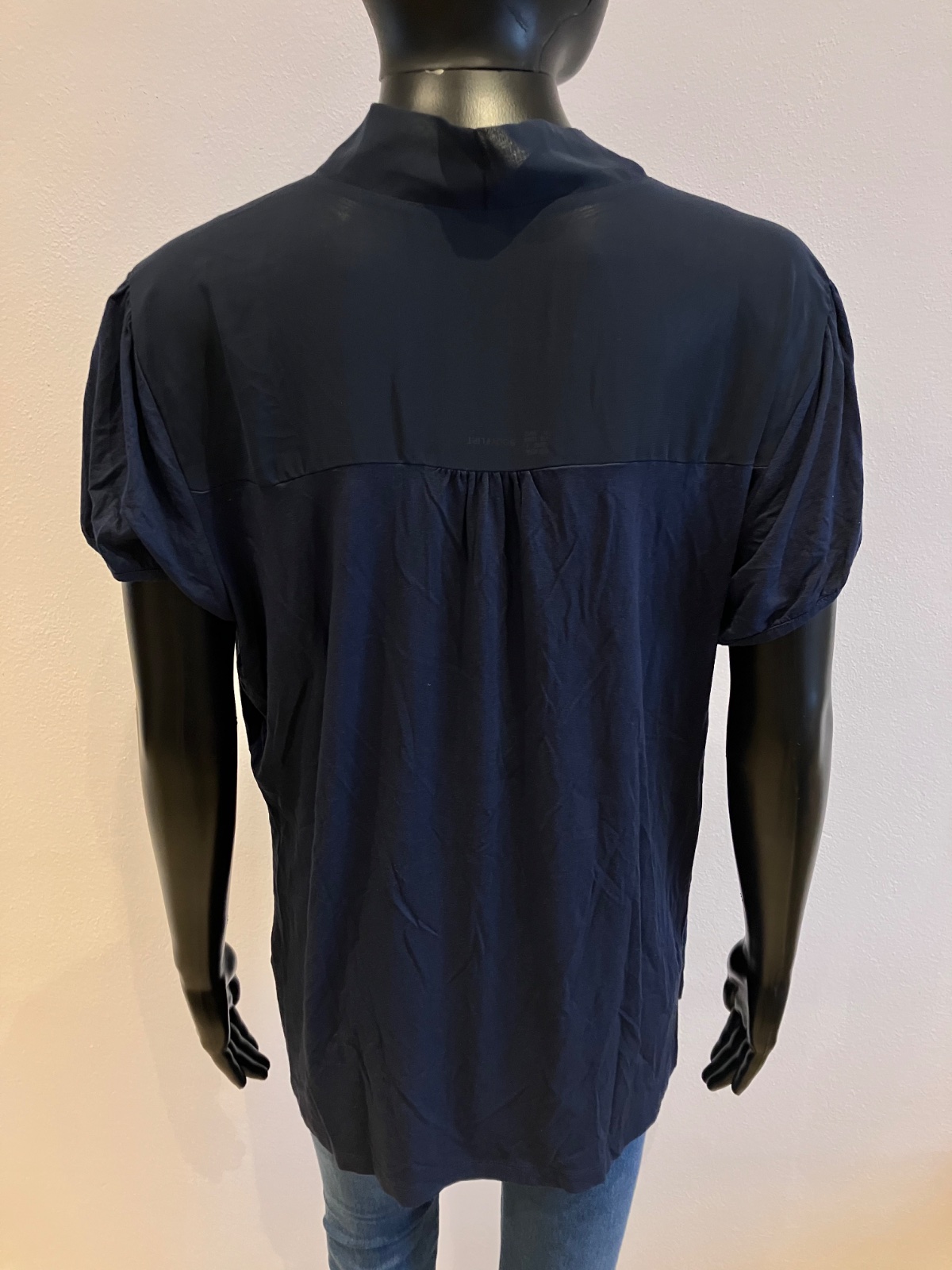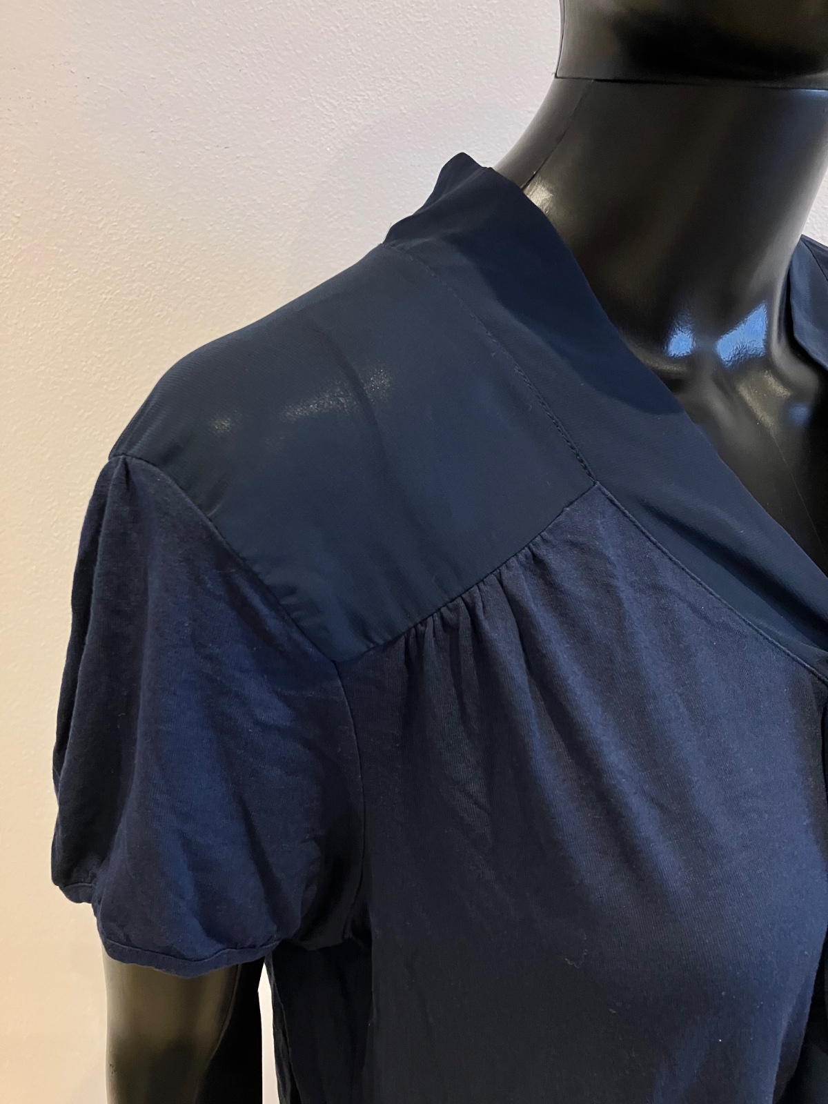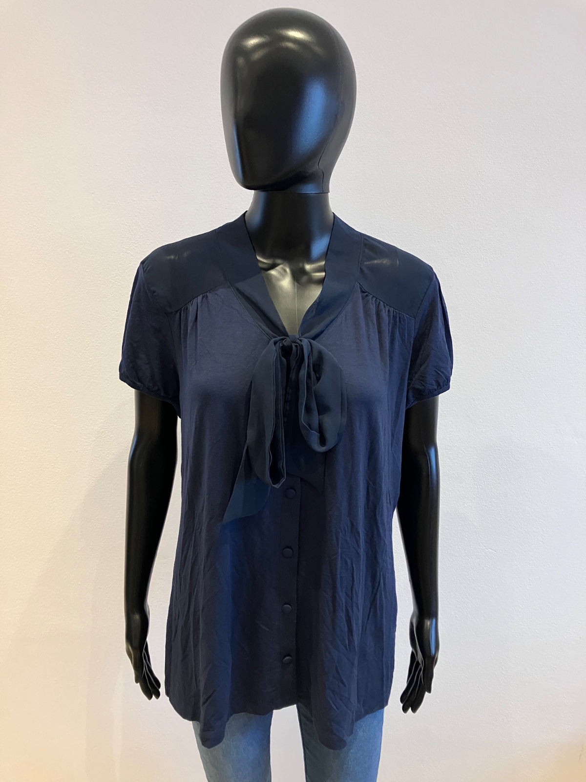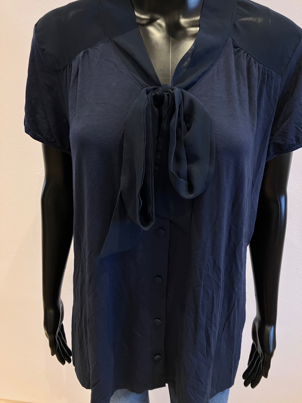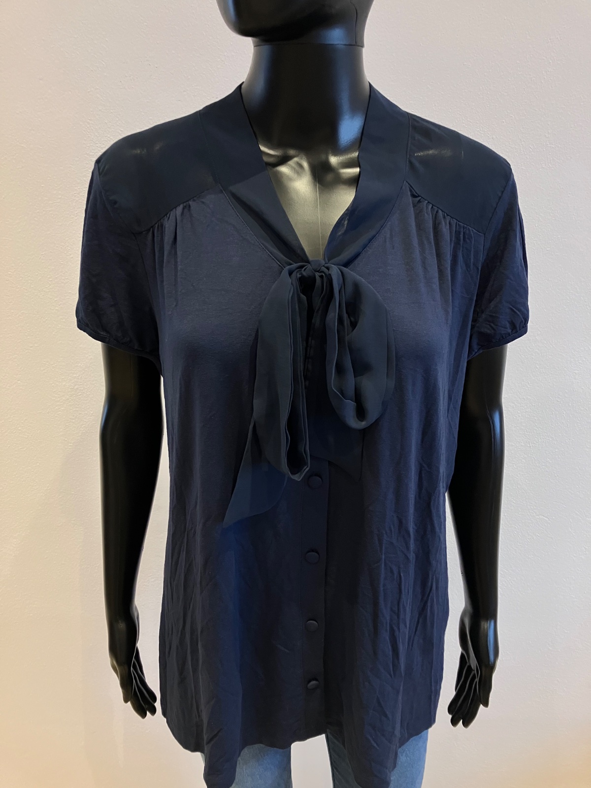 Dámske tričko krátky rukáv s mašličkou, tylom, zapínanie na gombíky, elastické.