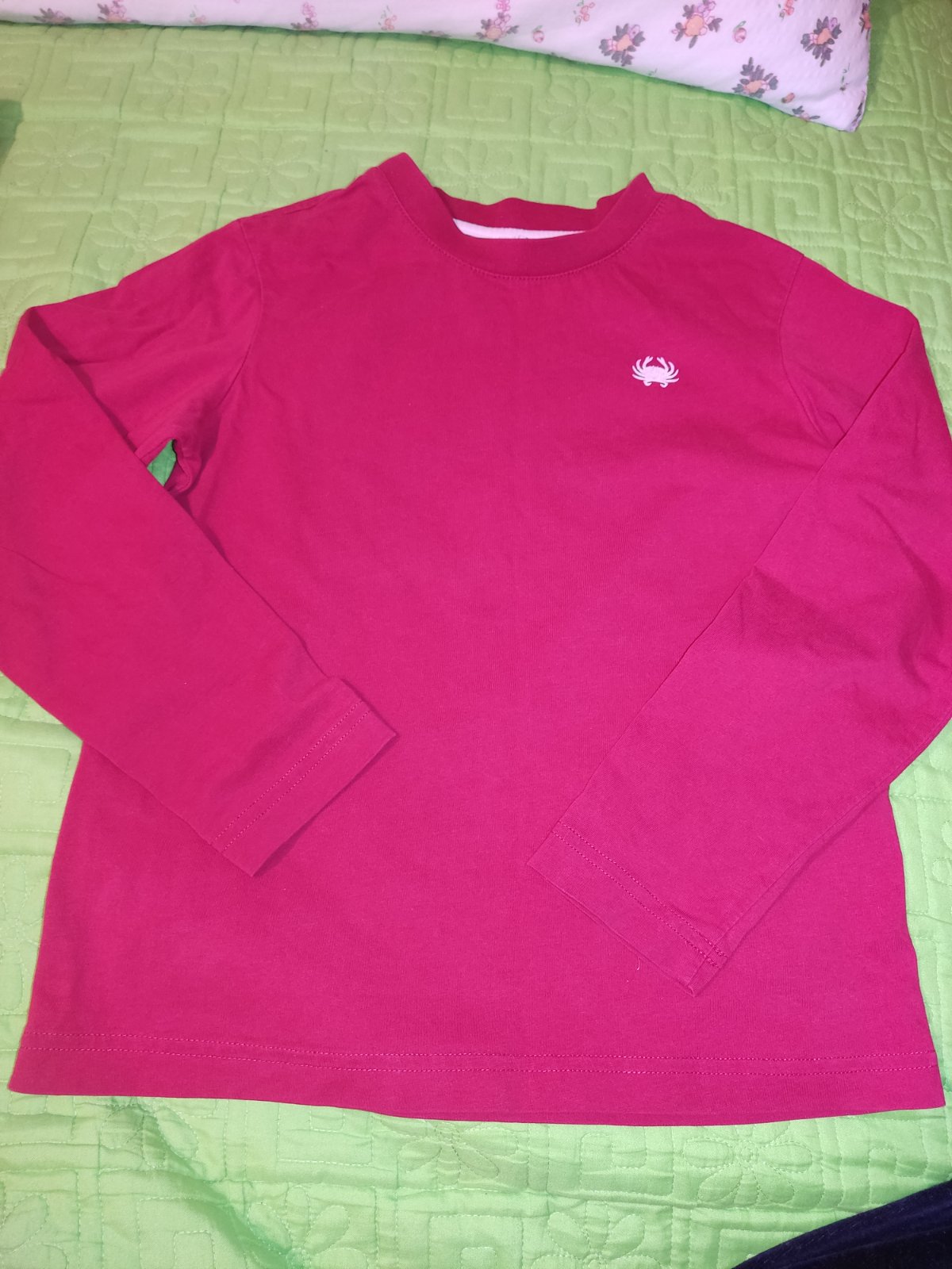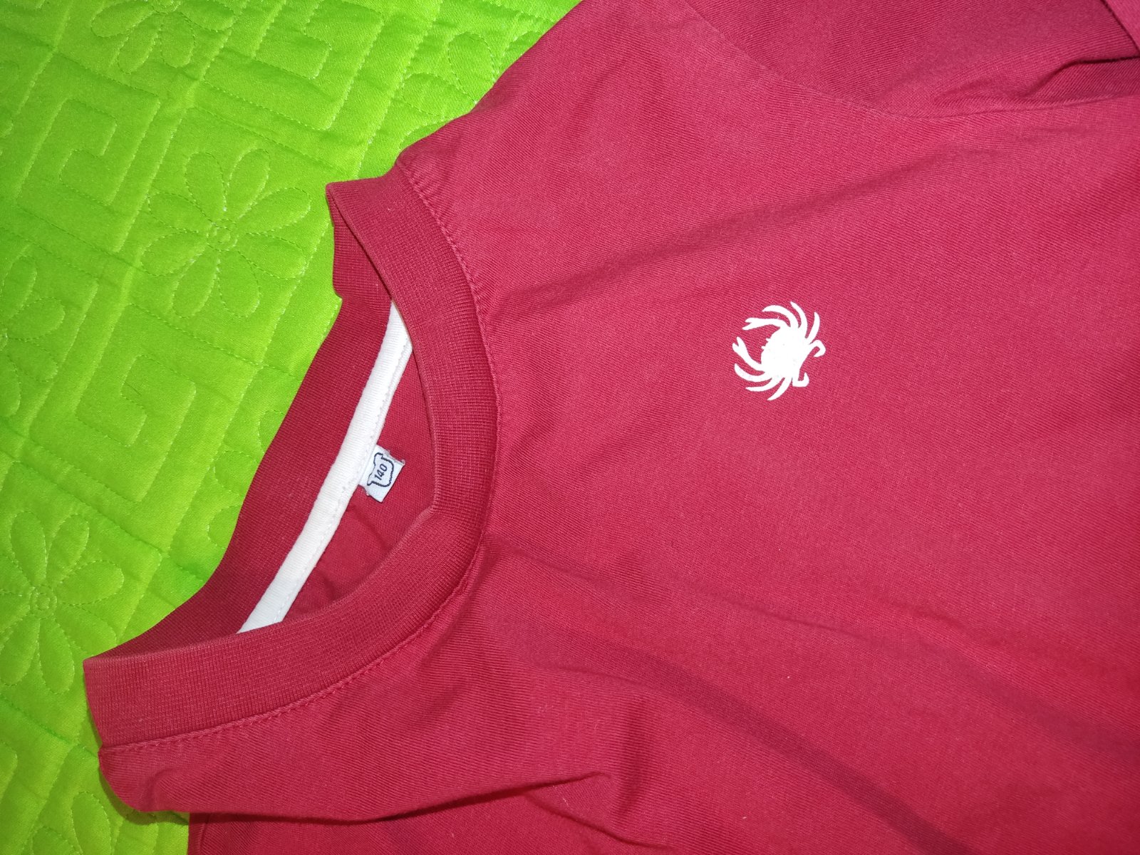 Predané nosené tričko vo veľmi dobrom stave. Kvalitná bavlna, drží tvar, farba sýto červená, len blesk to osvetlil do ružova.