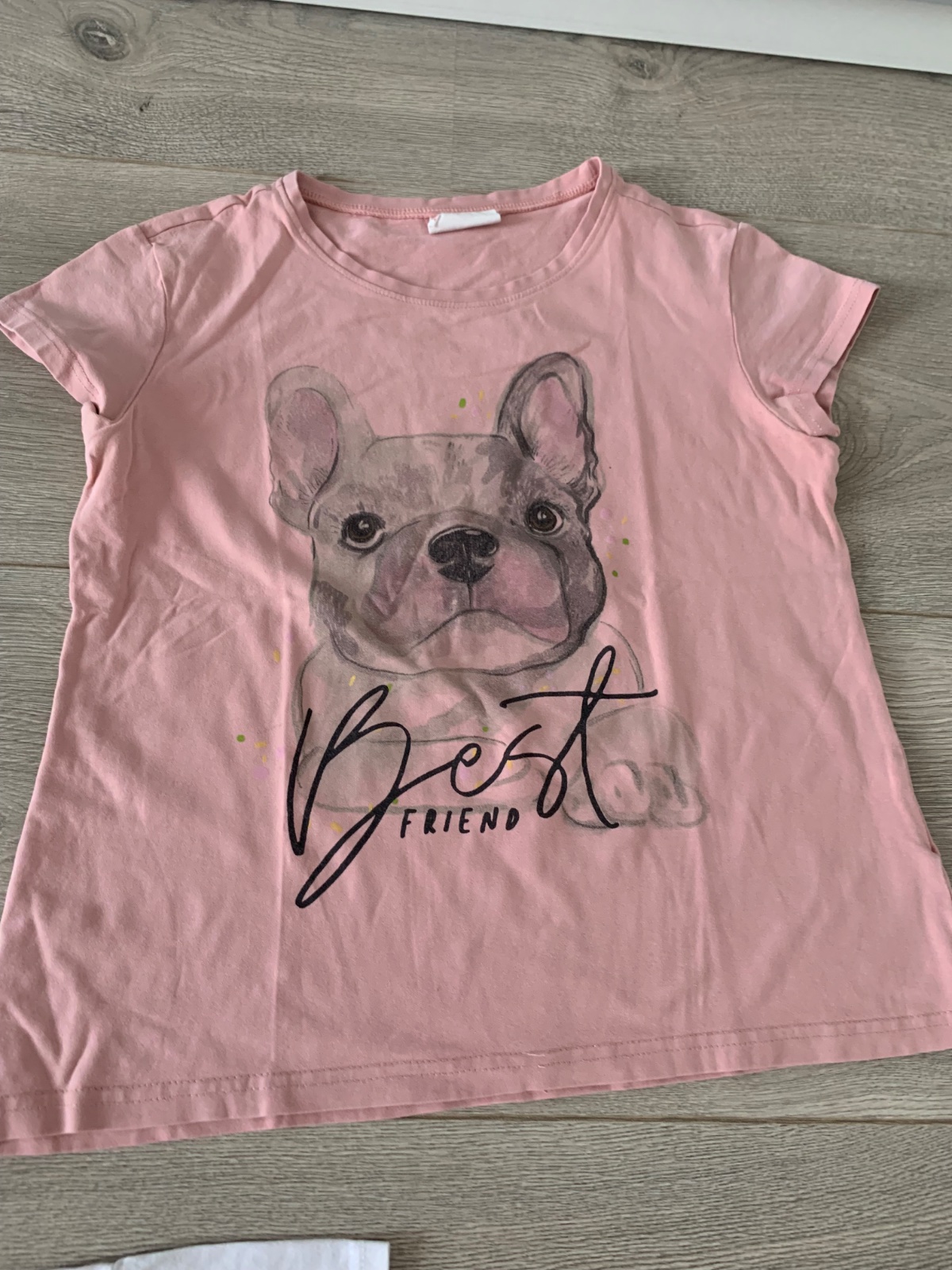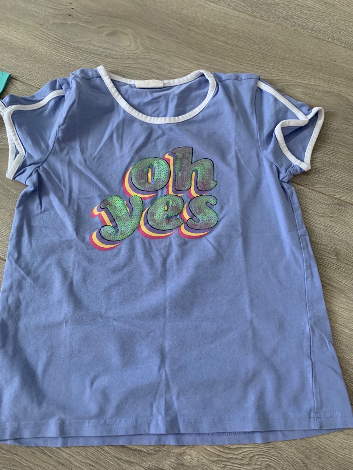 Veľmi pekné a kvalitné tričko. Dúha je akoby z koženky. Je z mierne elastickej látky, takže sa veľmi dobré oblieka. Dĺžka Je 53 cm, pod pazuchami 38 cm. Jediný chybička, pozri foto, na pravej stran...