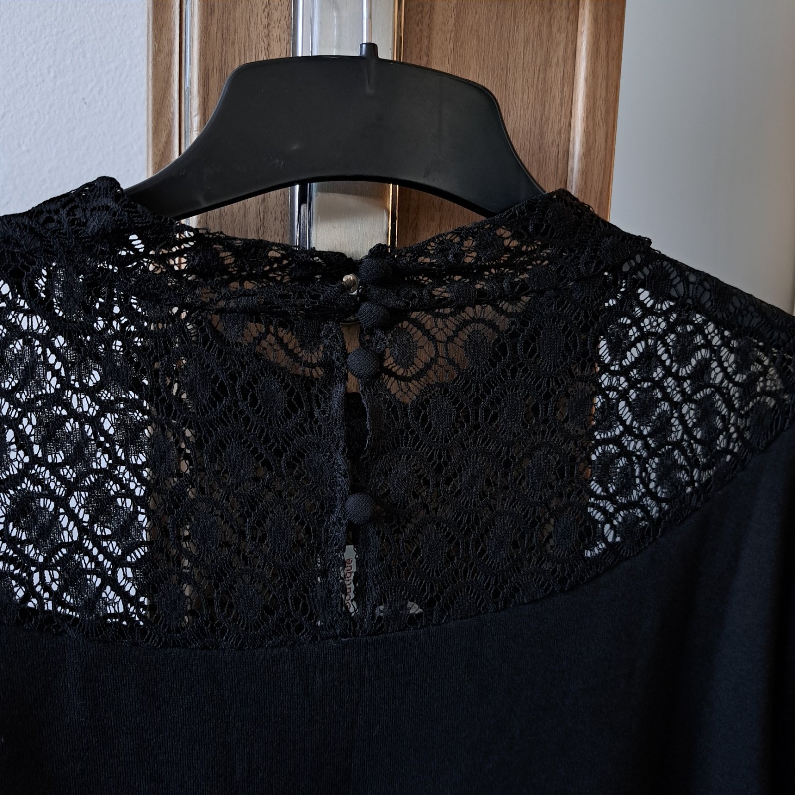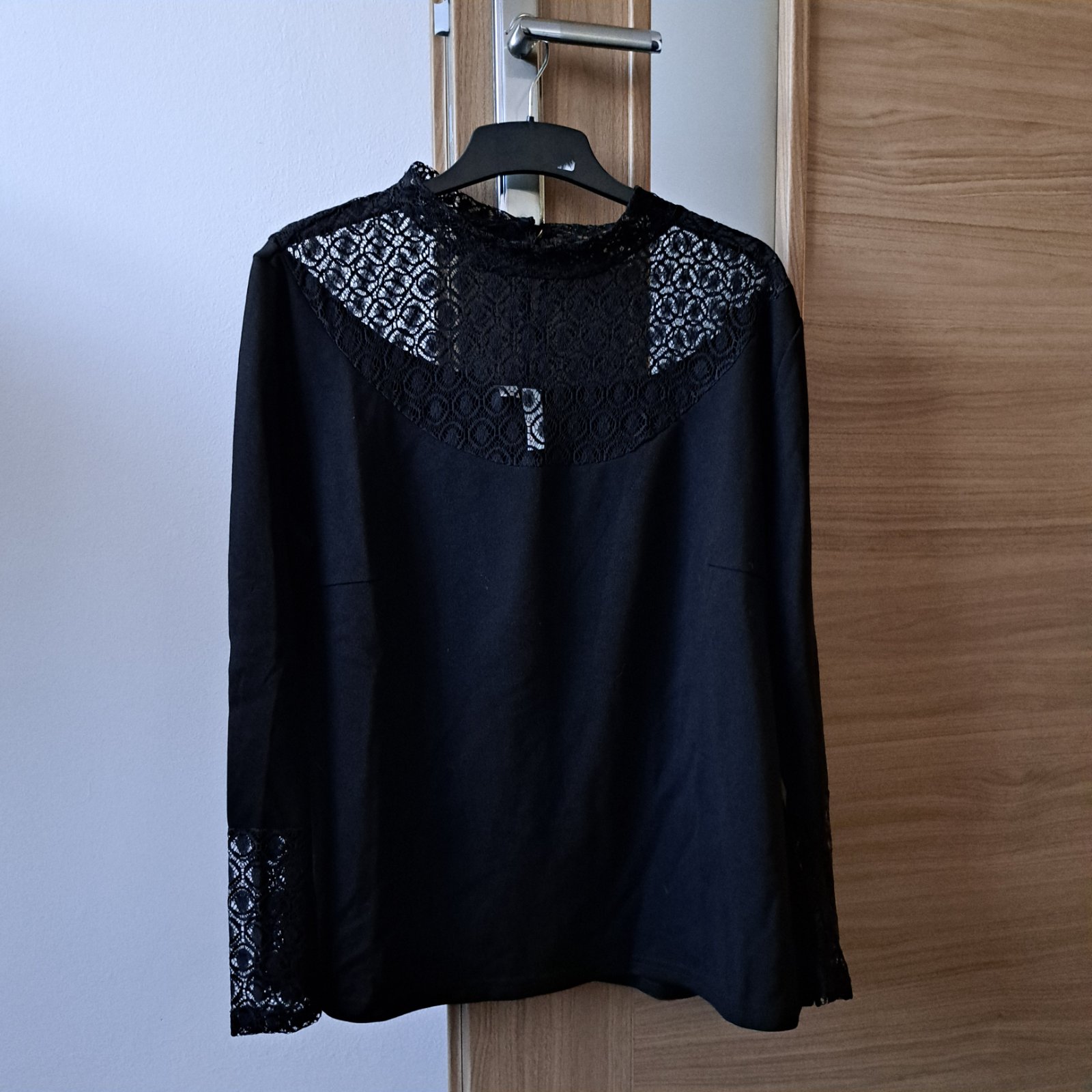 Minimálne nosený, ako nový. Materiál je niečo, ako hrubšia tričkovina. Farba je sýta čierna.