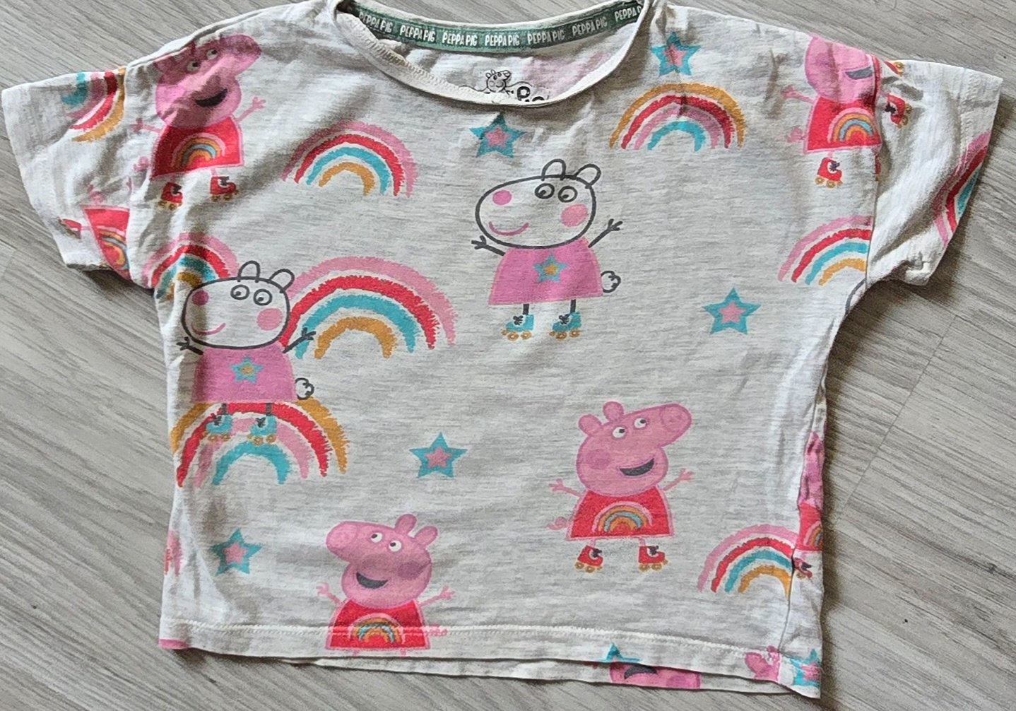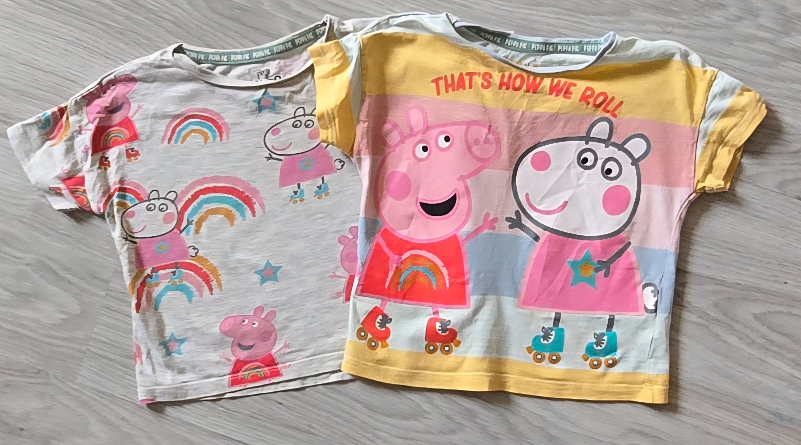 Ponúkam 2 ks trička peppa pig.Na jednom (prikladám fotky),je v spodnej časti špinavé.Pokušala som sa to odfotit