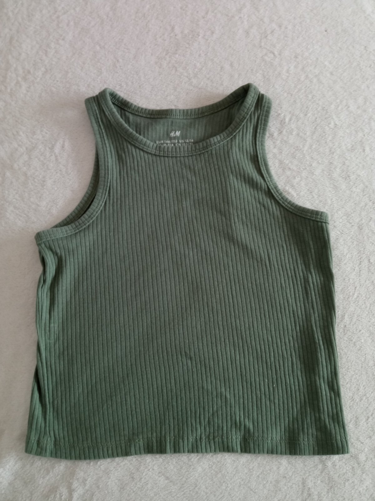 tmavá zelená farba, dobrý stav materiál: bavlna veľkosť: 10 rokov rozmery: dĺžka od pleca dole 49 cm, šírka pod pazuchou 33 x 2 cm AJ/31 0,060m