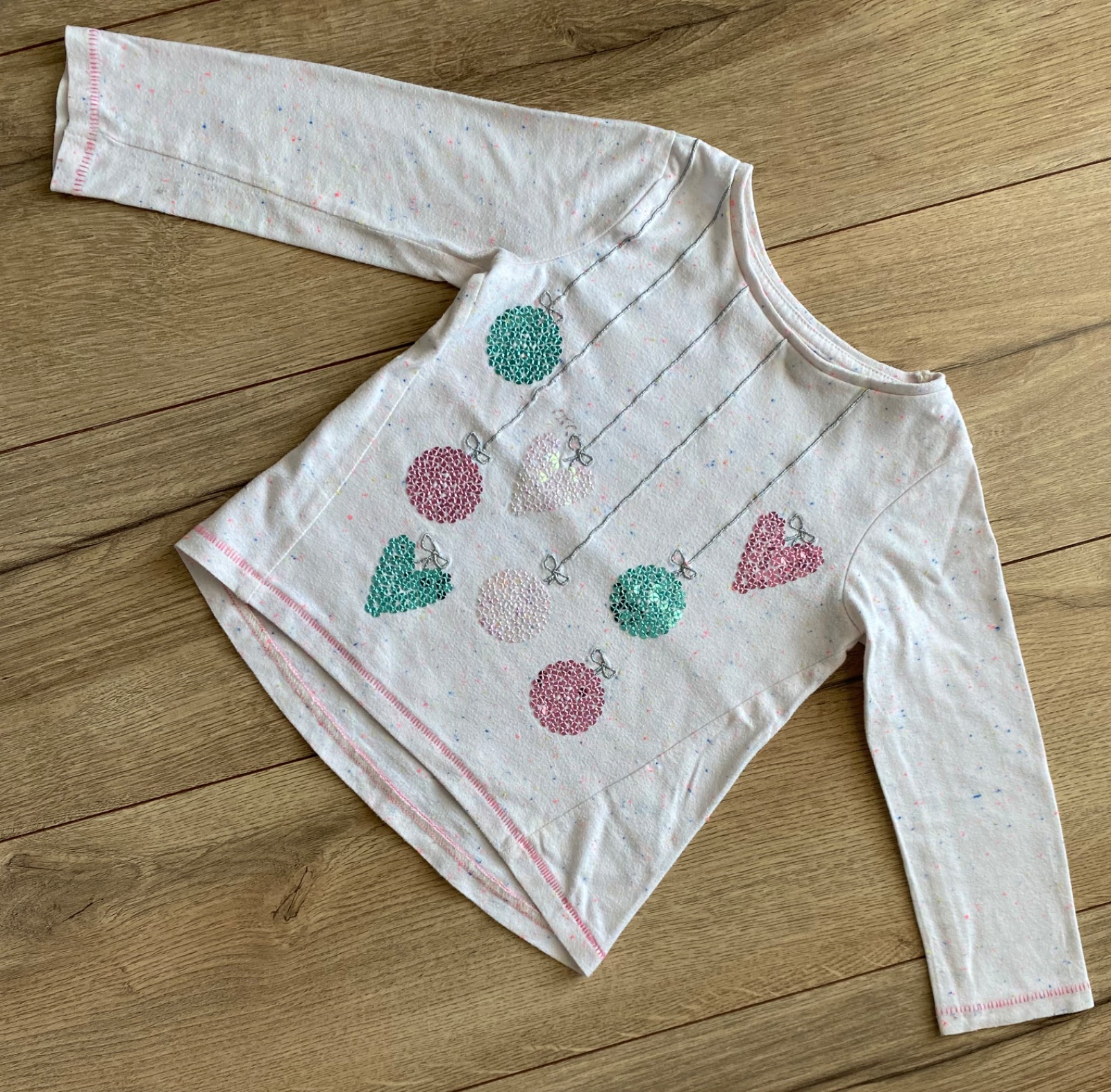 Tričko s dlhým rukávom šité v miestnej firme - Colour boom - na zákazku - v. 98 - s predĺženým zadným dielom. Materiál je taký skôr mikinový. Farba je skôr jemne krémová s výrazným lemovaním okolo ...