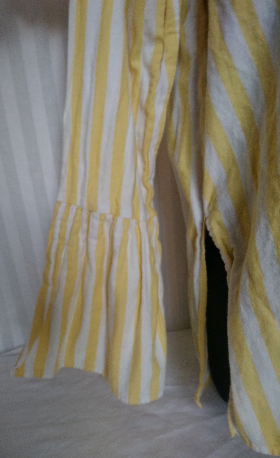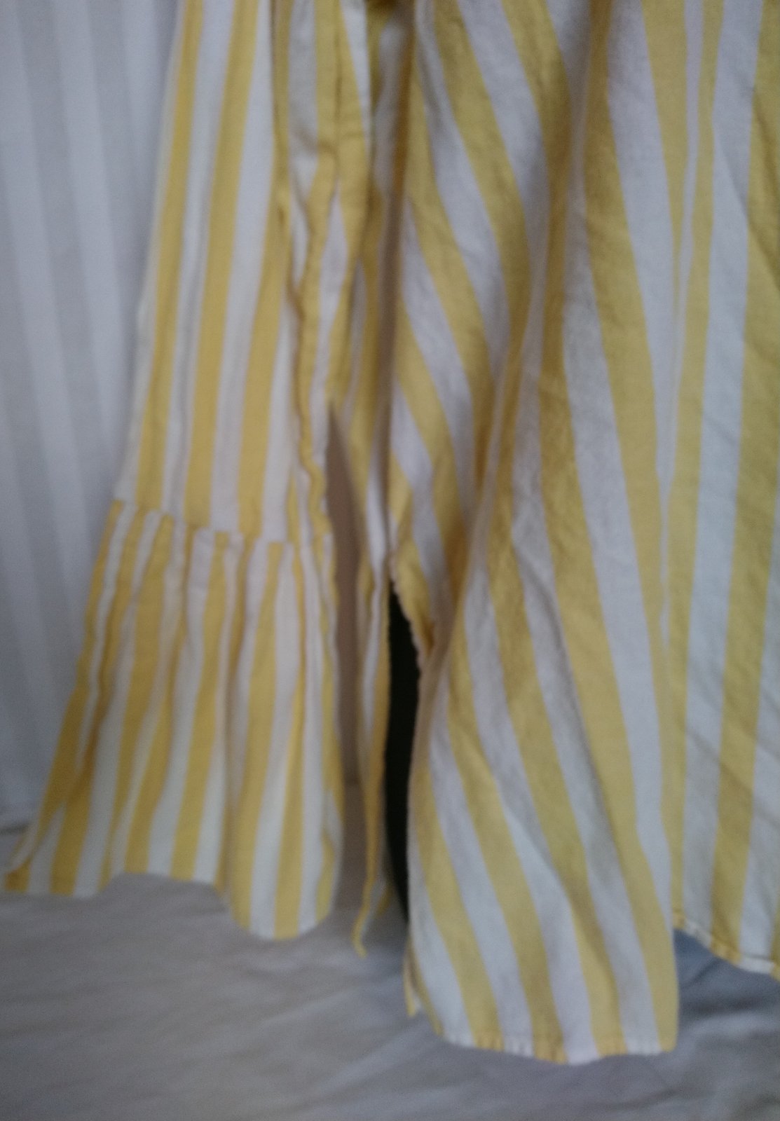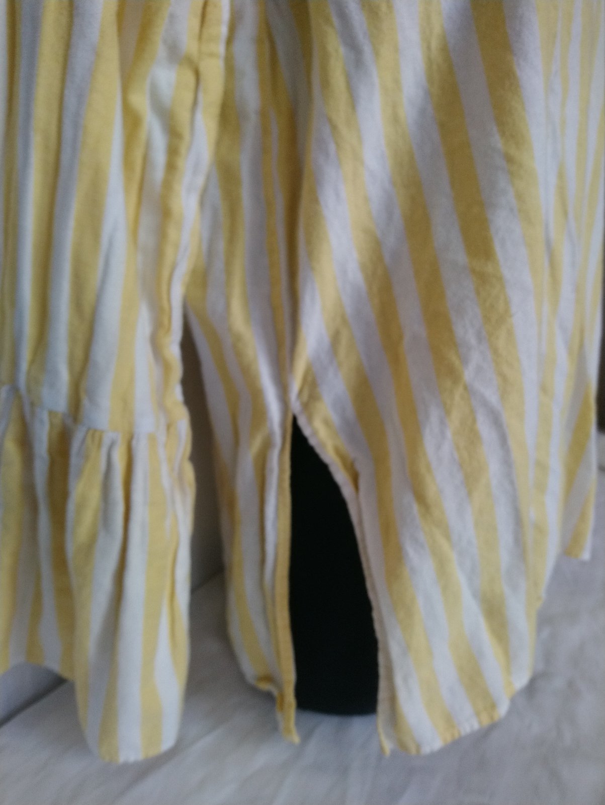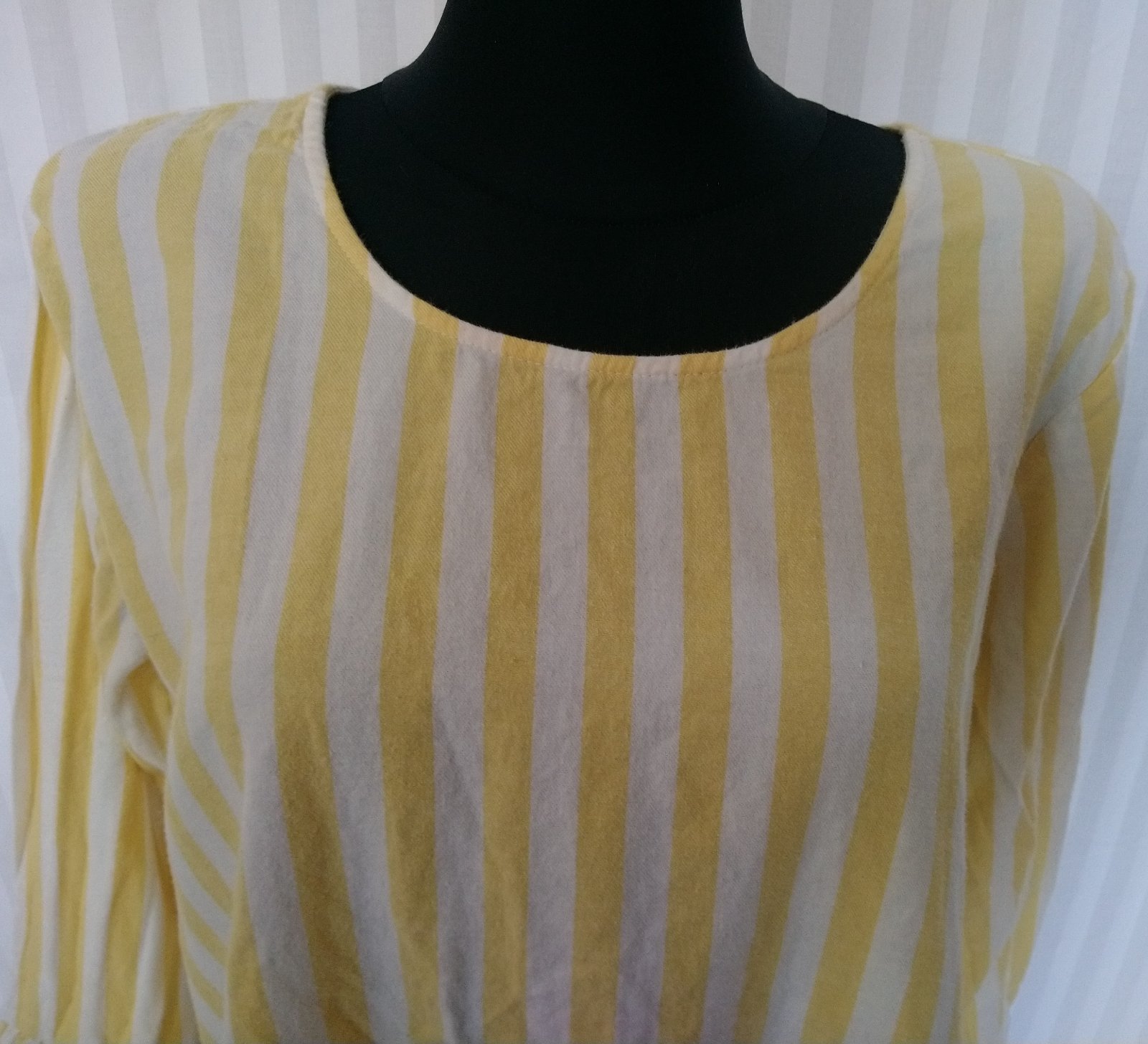 dámsky pásikavý sýto žlto biely blúzový top, vzadu zapínanie na gombík,