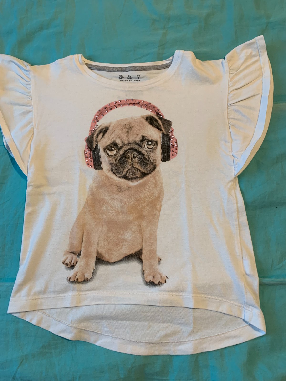 To so srdiečkom má fľaky - viď foto, pridávam ako darček. Tričko s mopslíkom ok.