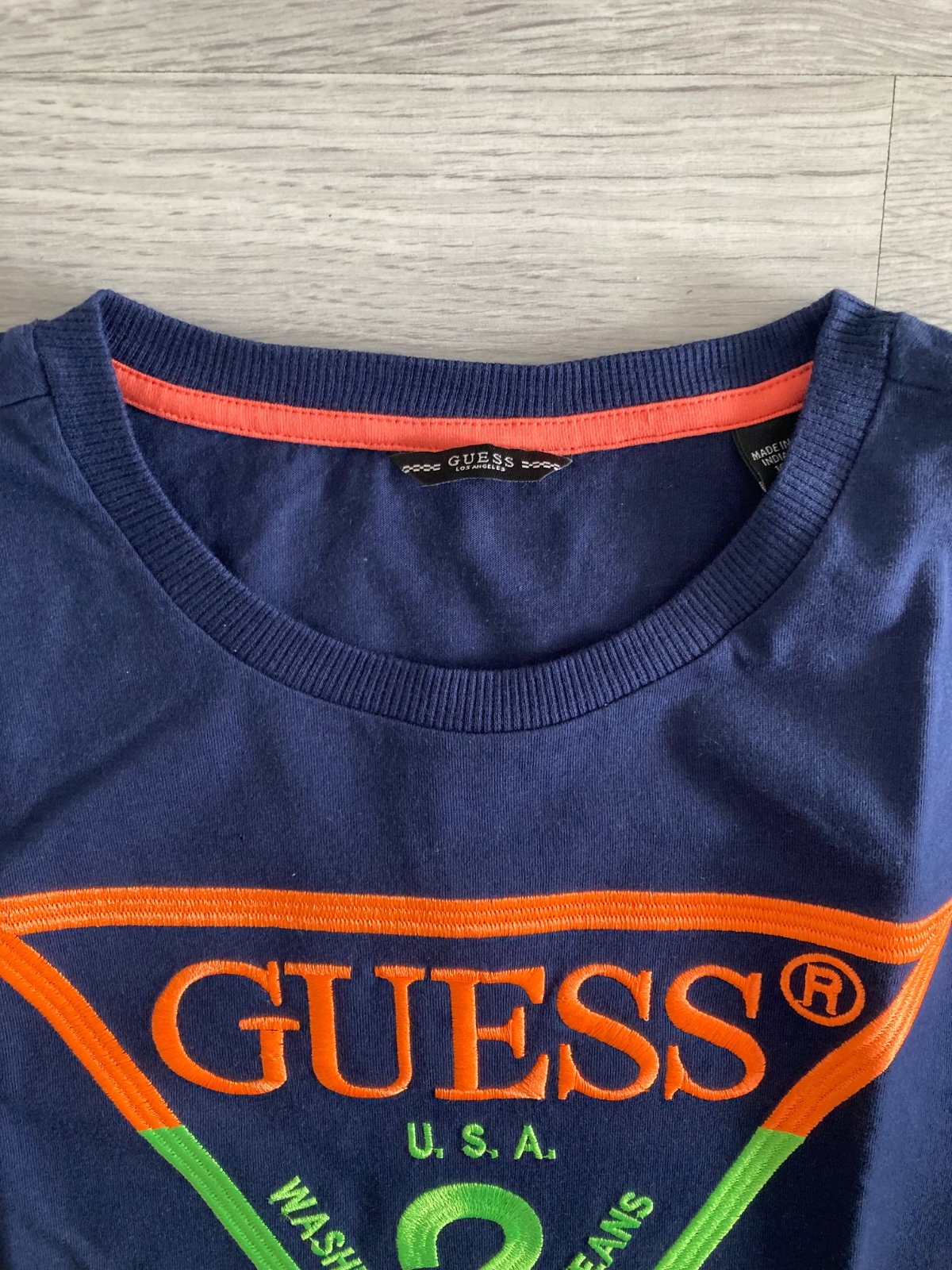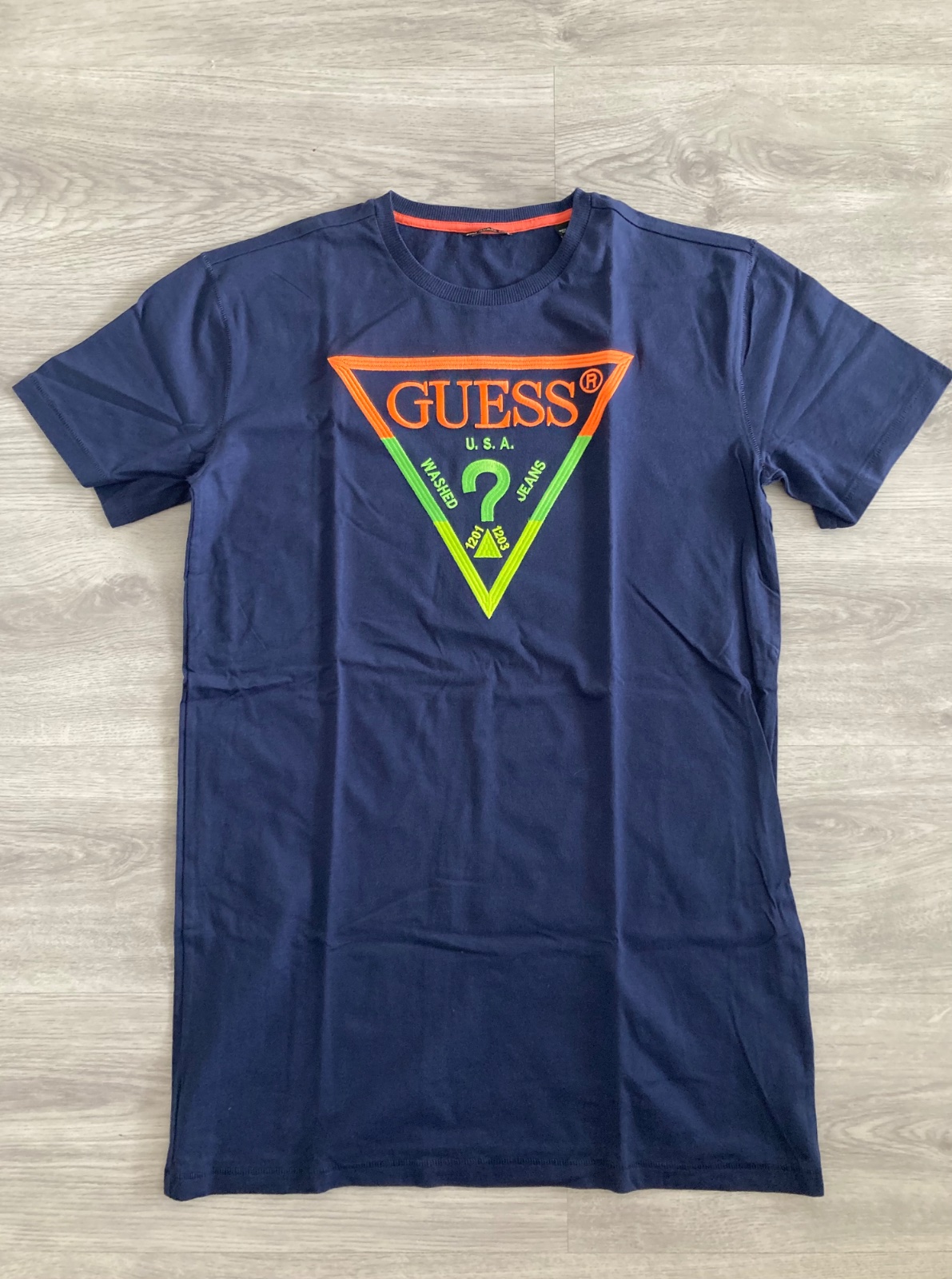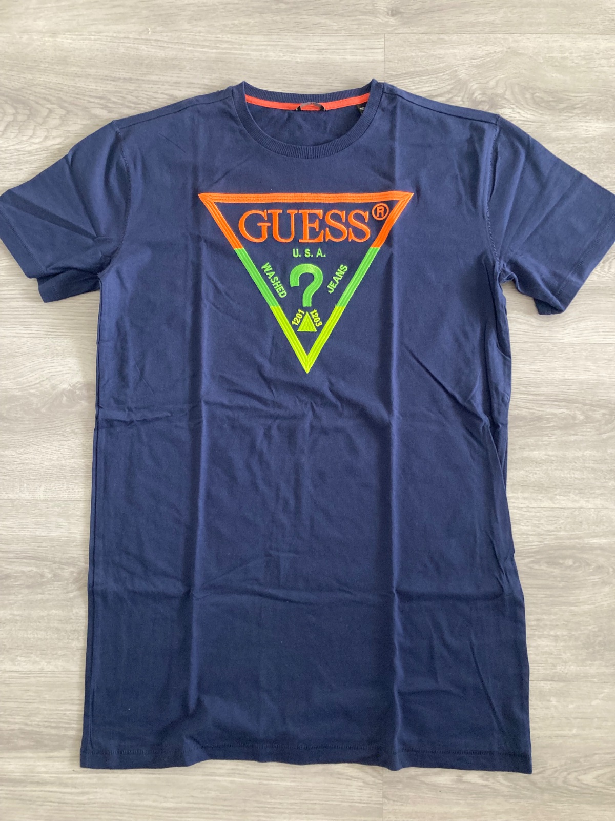 Predám originál úplne nové krásne tmavomodré tričko značky GUESS, je len bez visačky, ani raz nebolo oblečené. Veľkosť je uvedená na 18 rokov. Rozmery ( dĺžka: 78,5 cm, šírka: 50,5 cm ). Cena je uvedená bez poštovného.