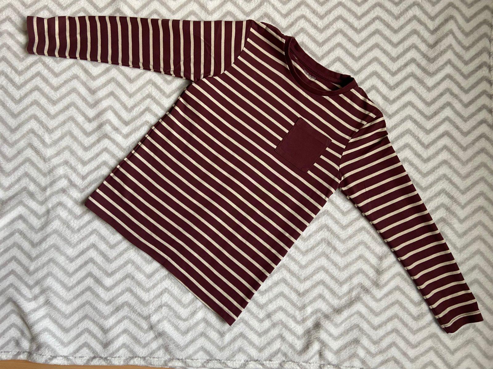Predám krásne bordovo-krémové pásikavé tričko francúzskej značky Vertbaudet, veľkosť 140.