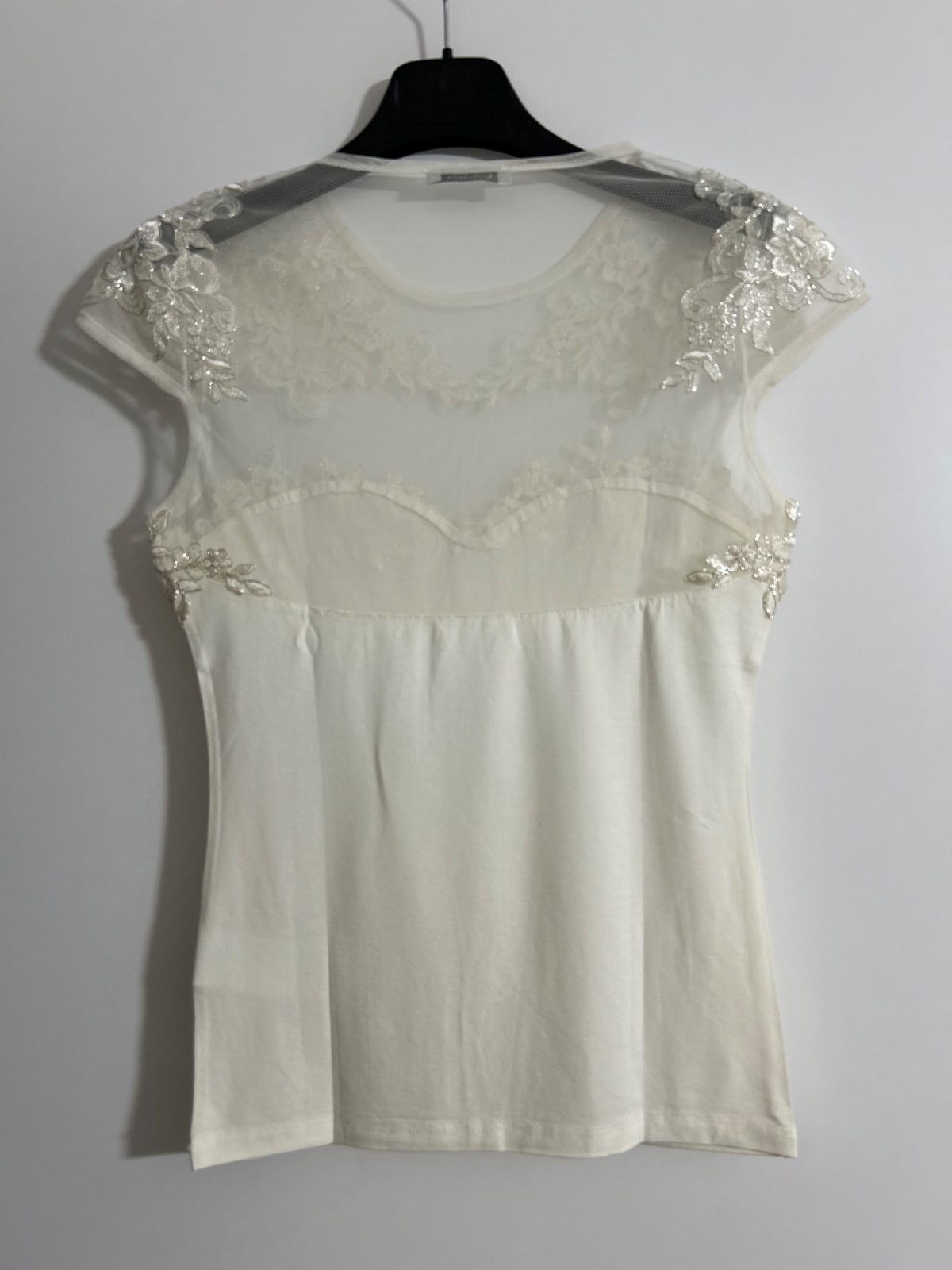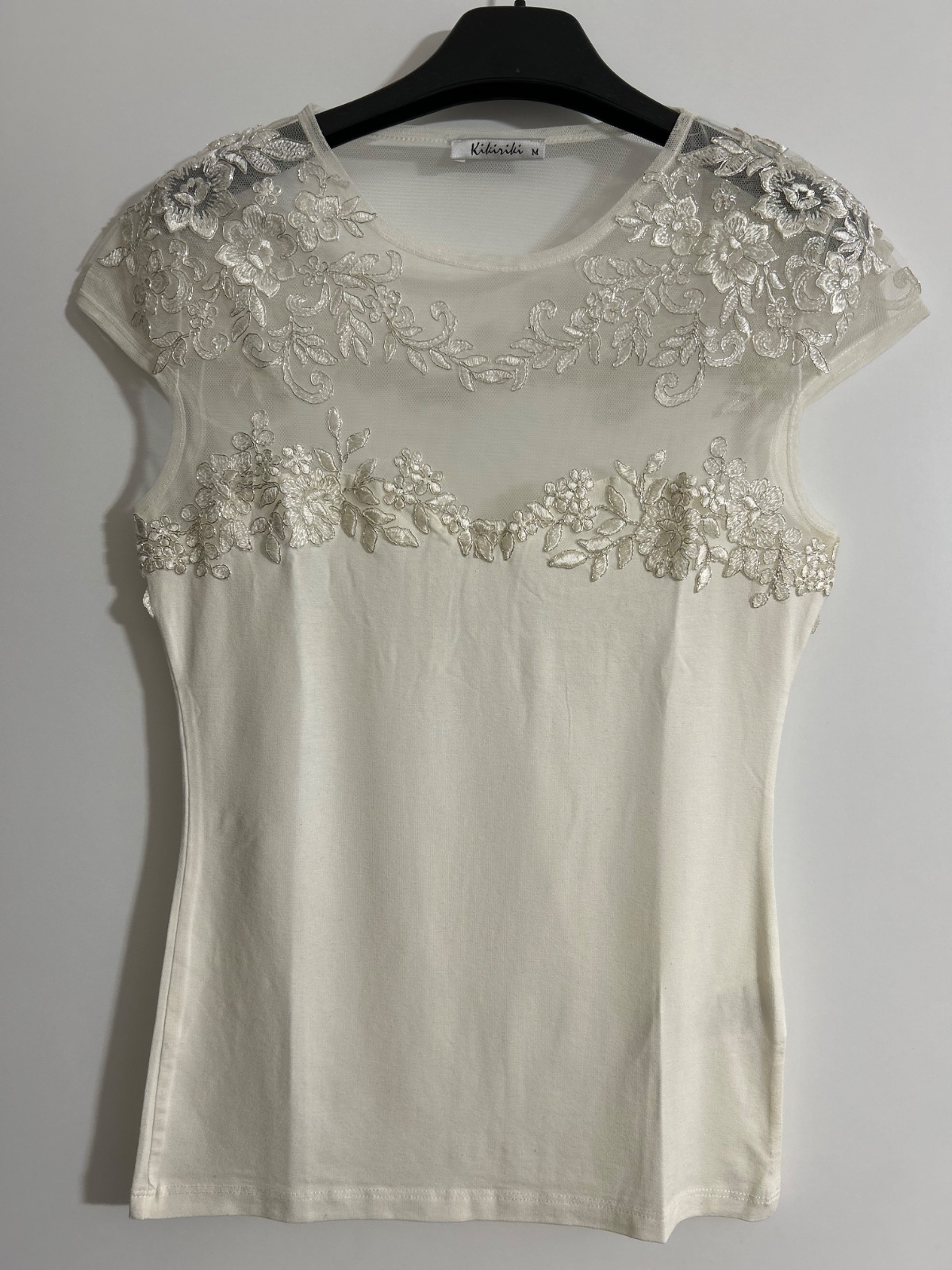 Zaujímavé tričko s výšivkou na prednej strane vo veľkosti M.