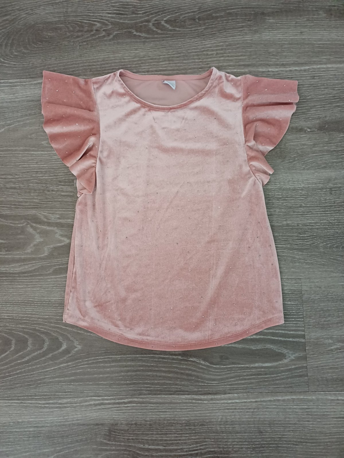 Krásne zamatové tričko s kamienkami, uvrdená veľkosť 134/140.