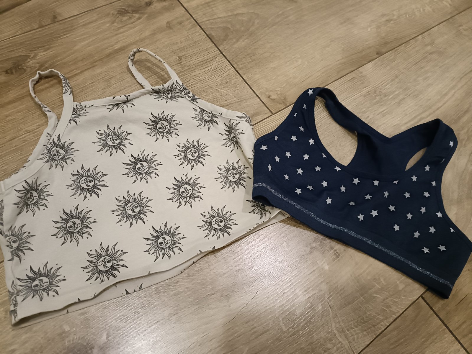 Krémovy crop top Lindex,druhé tmavomodré hviezdičkové.spolu 3e