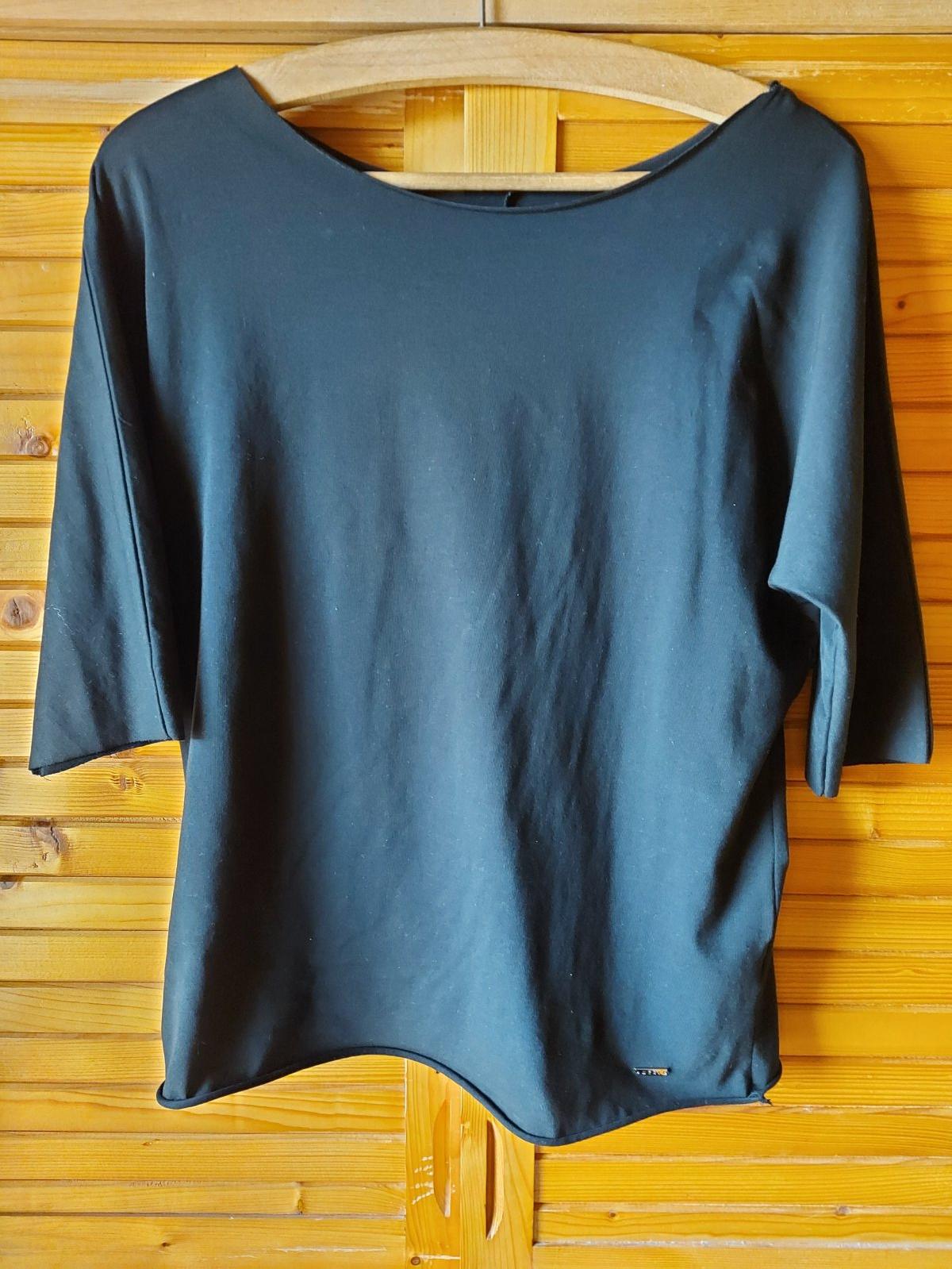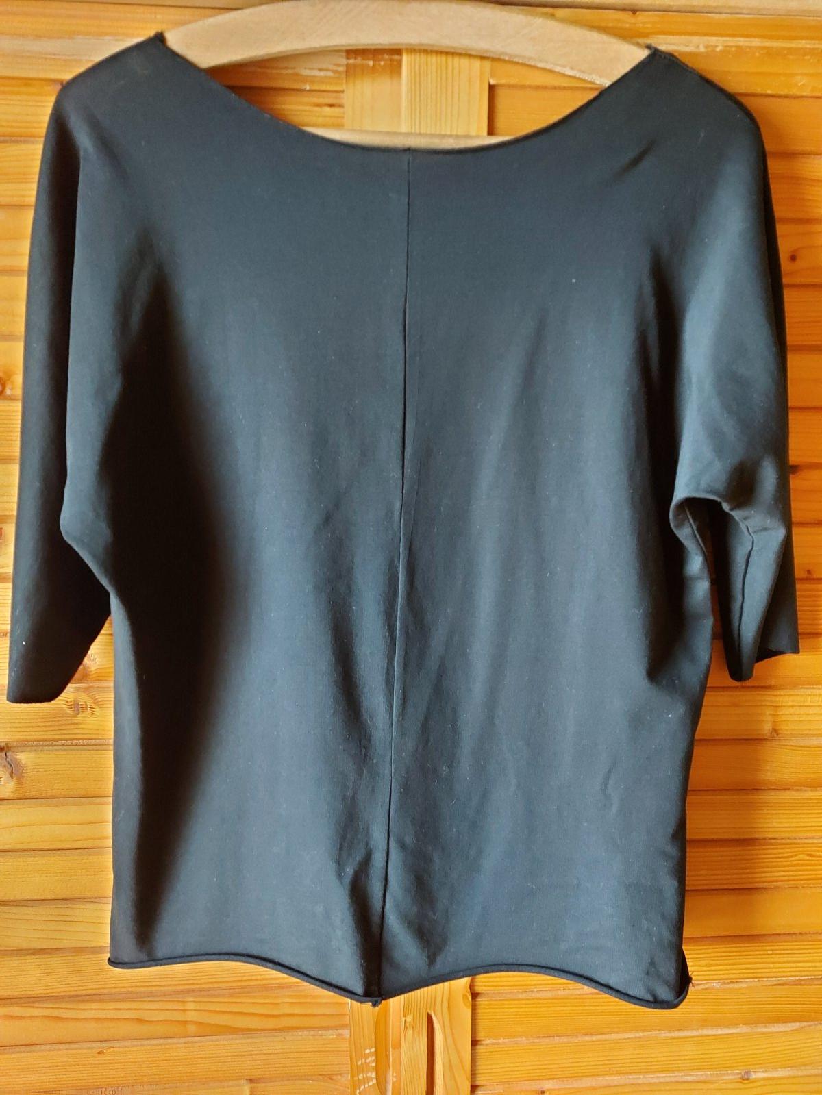 Tenká mikina /tričko/ čierna, S/M, voľný strih, š. pod pazuchami v kľude - 49, dĺžka zadného dielu - 57, 3/4 rukáv-dĺžka - 42, elastický materiál