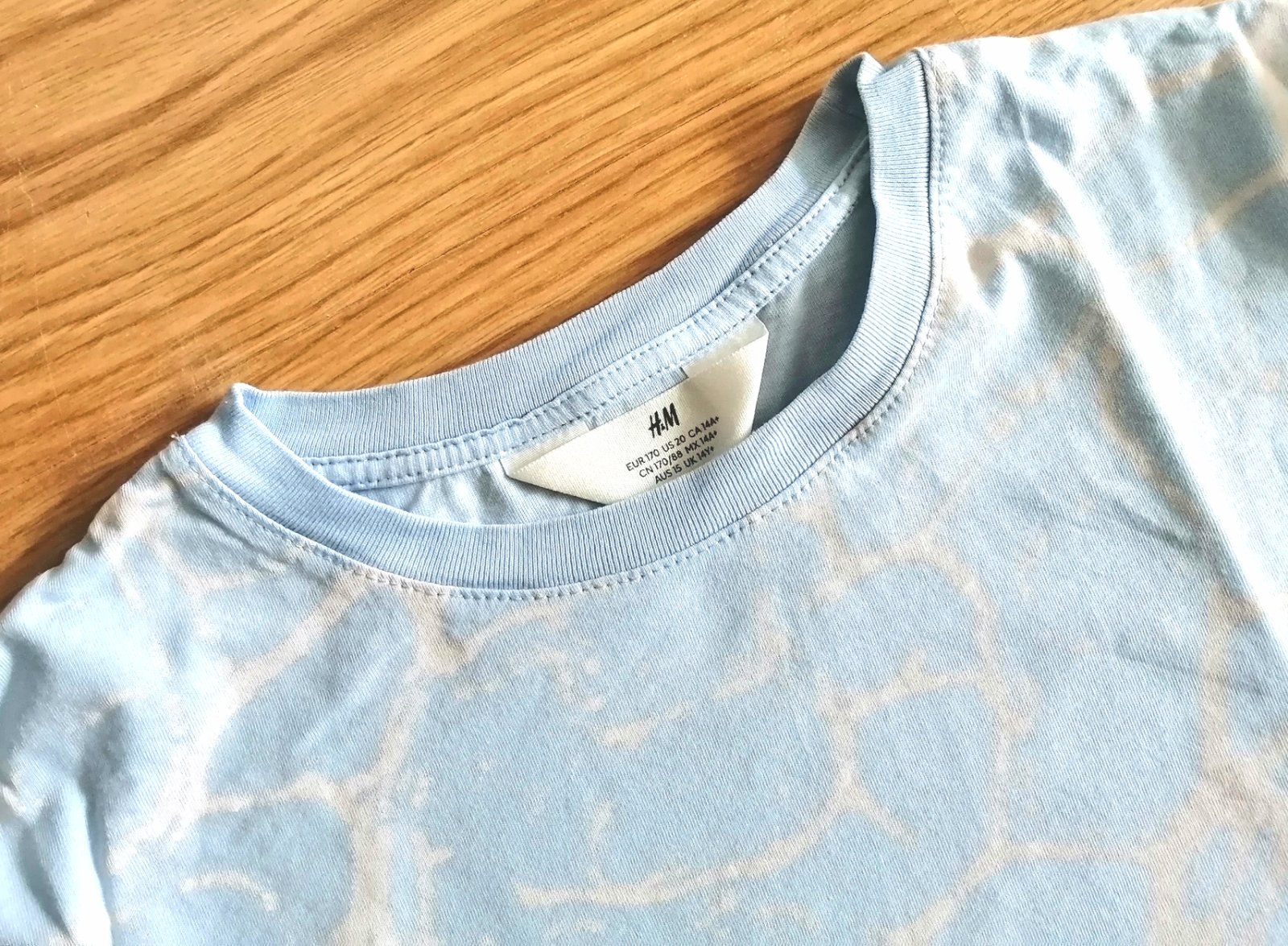 Kvalitné bavlnené chlapčenské tričko s krátkym rukávom od H&M, v príjemnej svetlomodrej farbe s bielou potlačou.