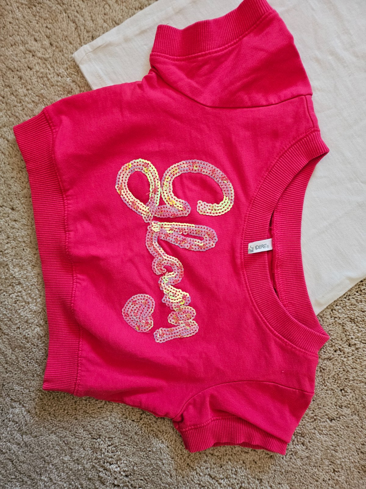 Krásne tričeno drahej značky, stav ako nové len má jediný fliačik, akplikácia - kamienky sú v top stave, cena symbolická, farba je lososovo ružová, v skutočnosti jemnejšia, bez pošty