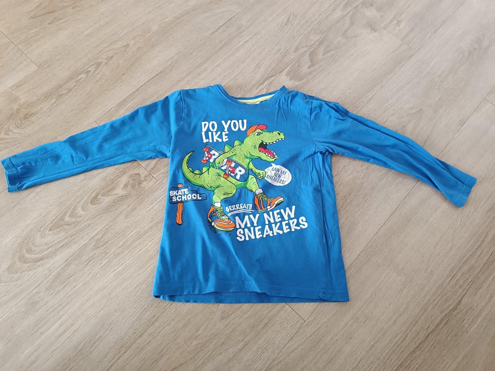 Pekné dinosaurove tričko veľkosť 122 vpredu maličký fliacik, a vzadu malinká dierka, inak žiadne vady, cena je uvedená bez poštovného