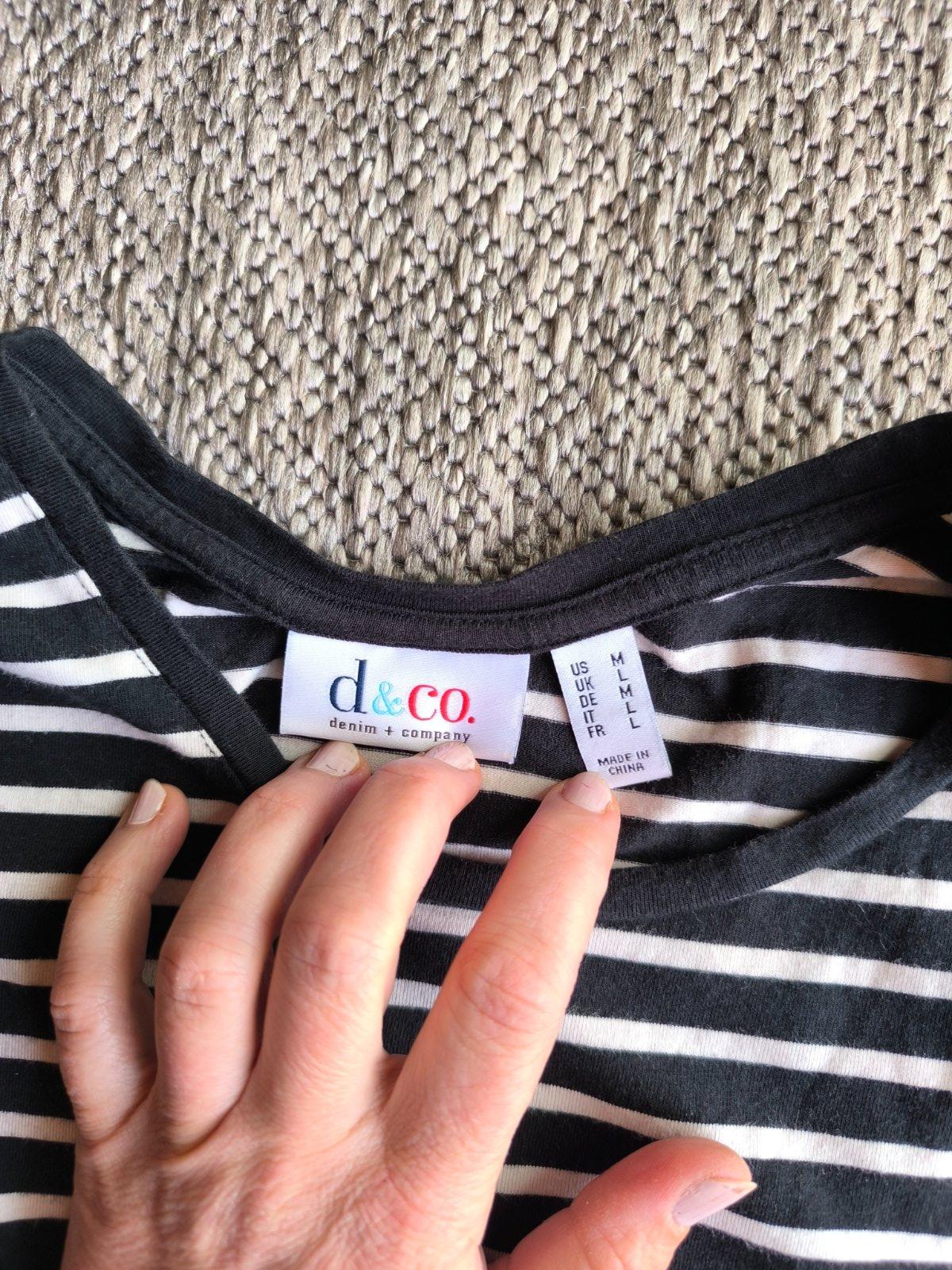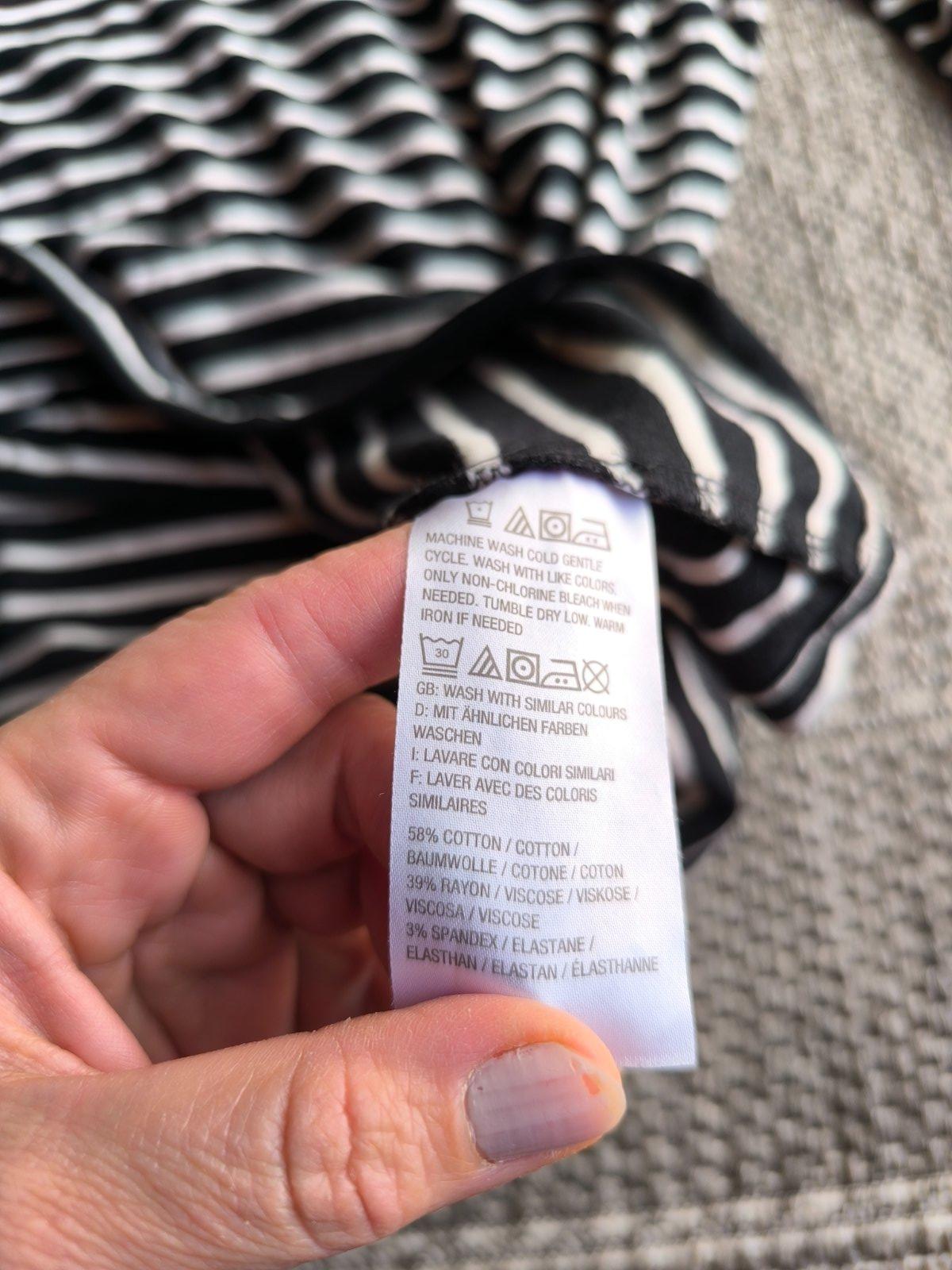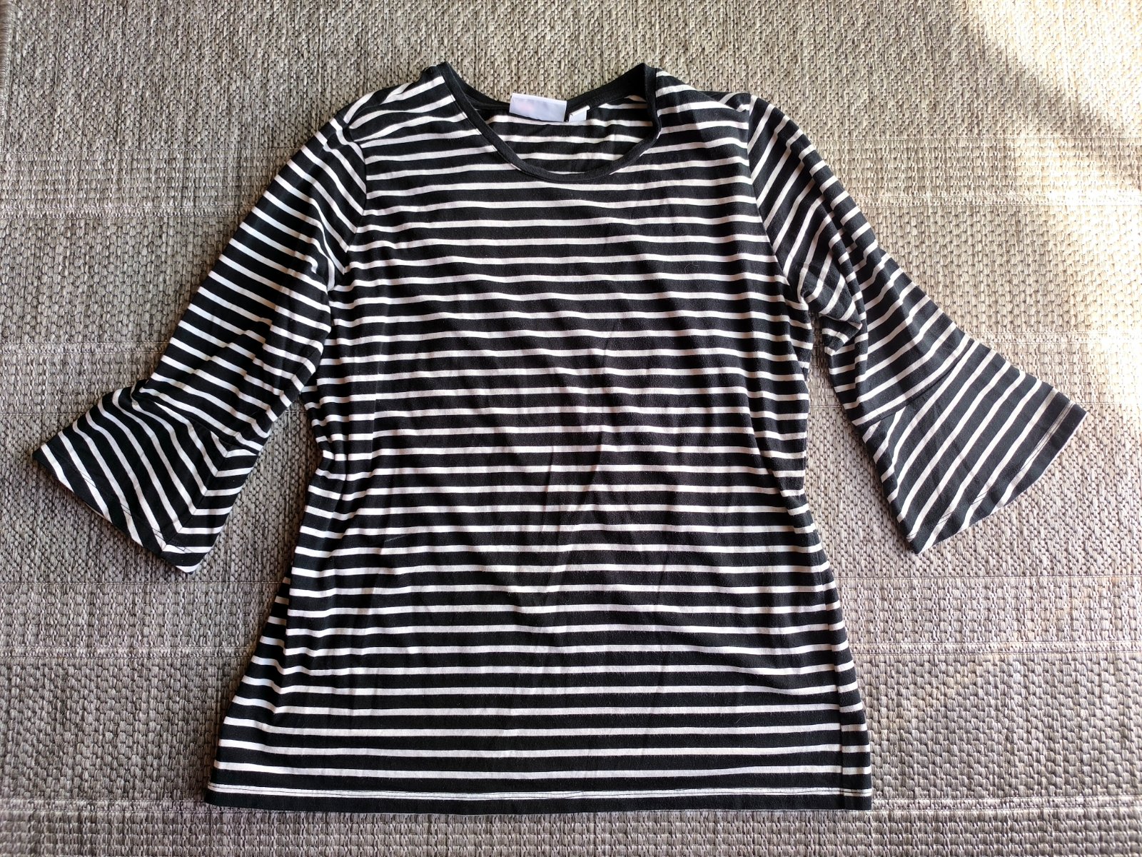 Čiernobiele pásikavé tričko, top s rozšírenými zvonovými 3/4 rukávmi. Hodí sa k džínsom aj do elegantného outfitu. Príjemný materiál, zmes bavlny, viskózy a elastanu. Veľkosť M/L, dĺžka 72cm, šírka 53-60cm, je elastické, prispôsobí sa. V super stave.