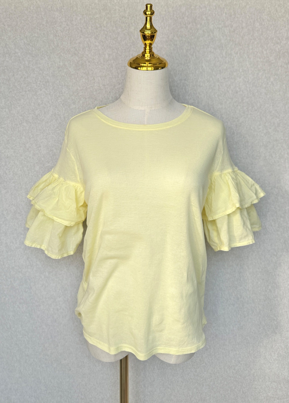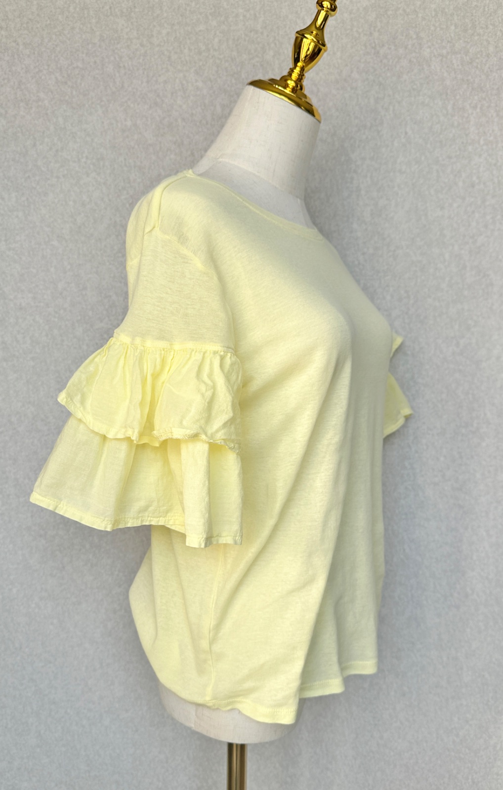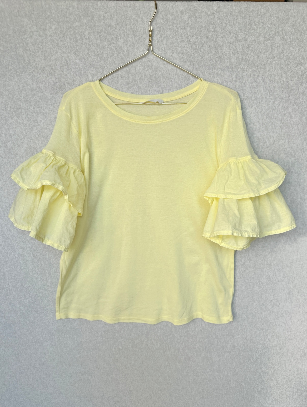 Úžasný top / tričko na leto s hravými volánmi na rukávoch. Jemný bavlnený úplet, v super stave, bez poškodení.