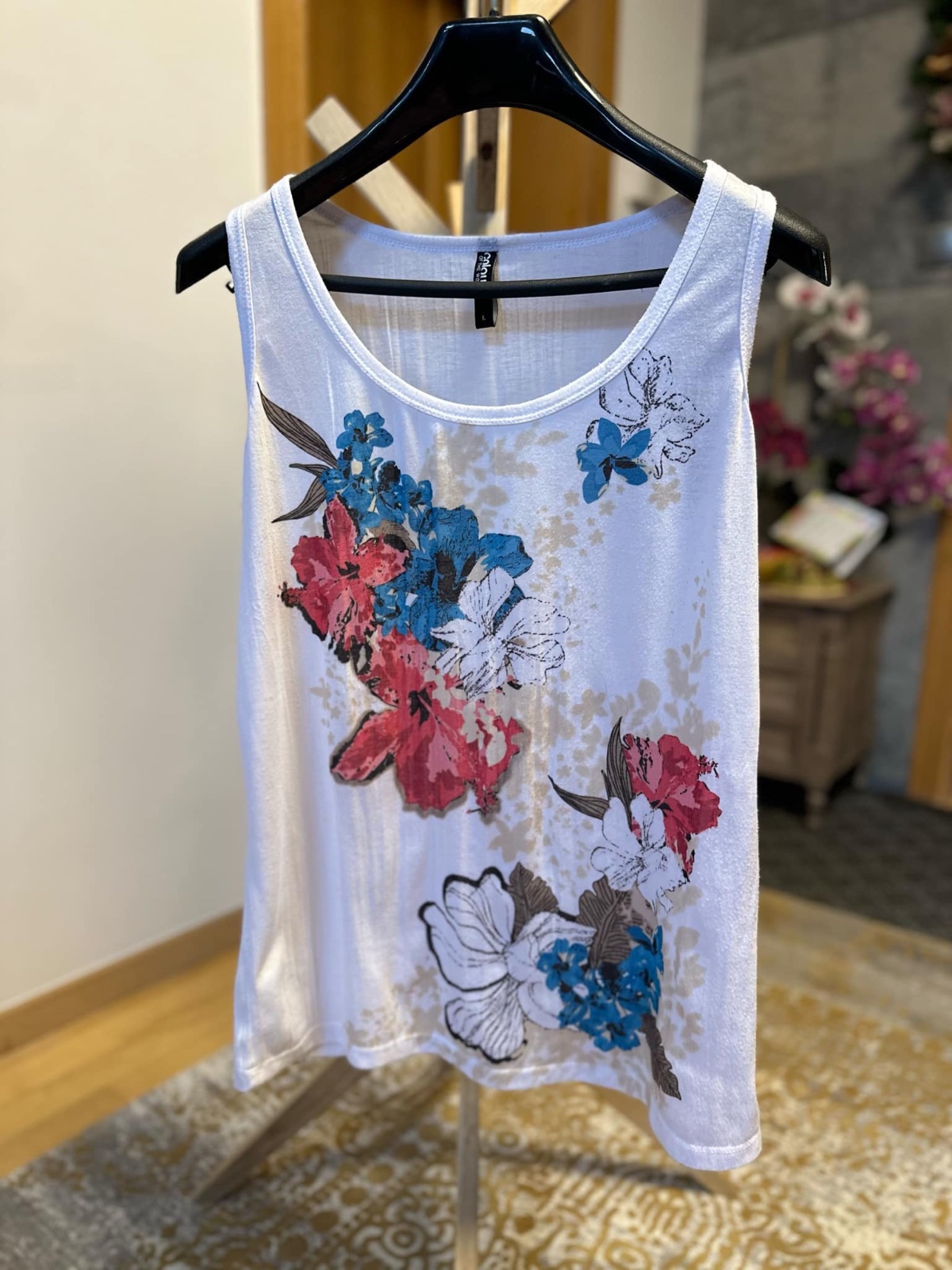 Krásne vzorované tielko. Bolo nosené a má jemné žmolky na niektorých miestach- foto. Treba donosiť. Dĺžka 71cm. Poštovné obyc list 2€