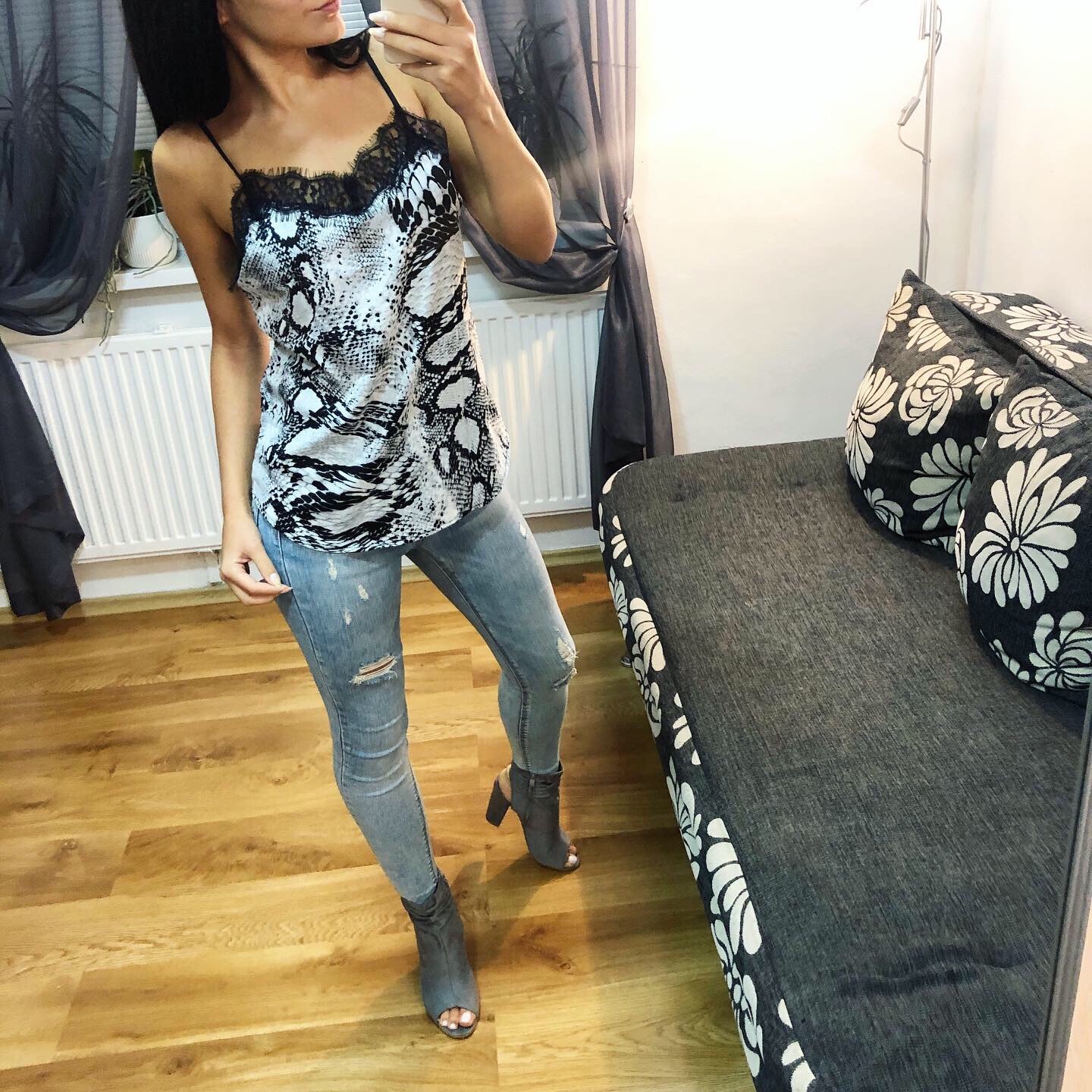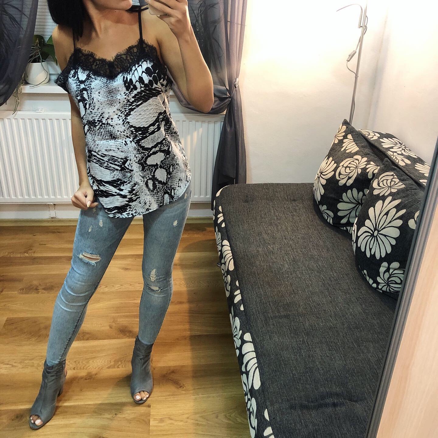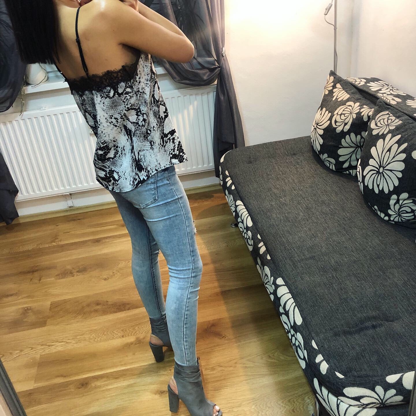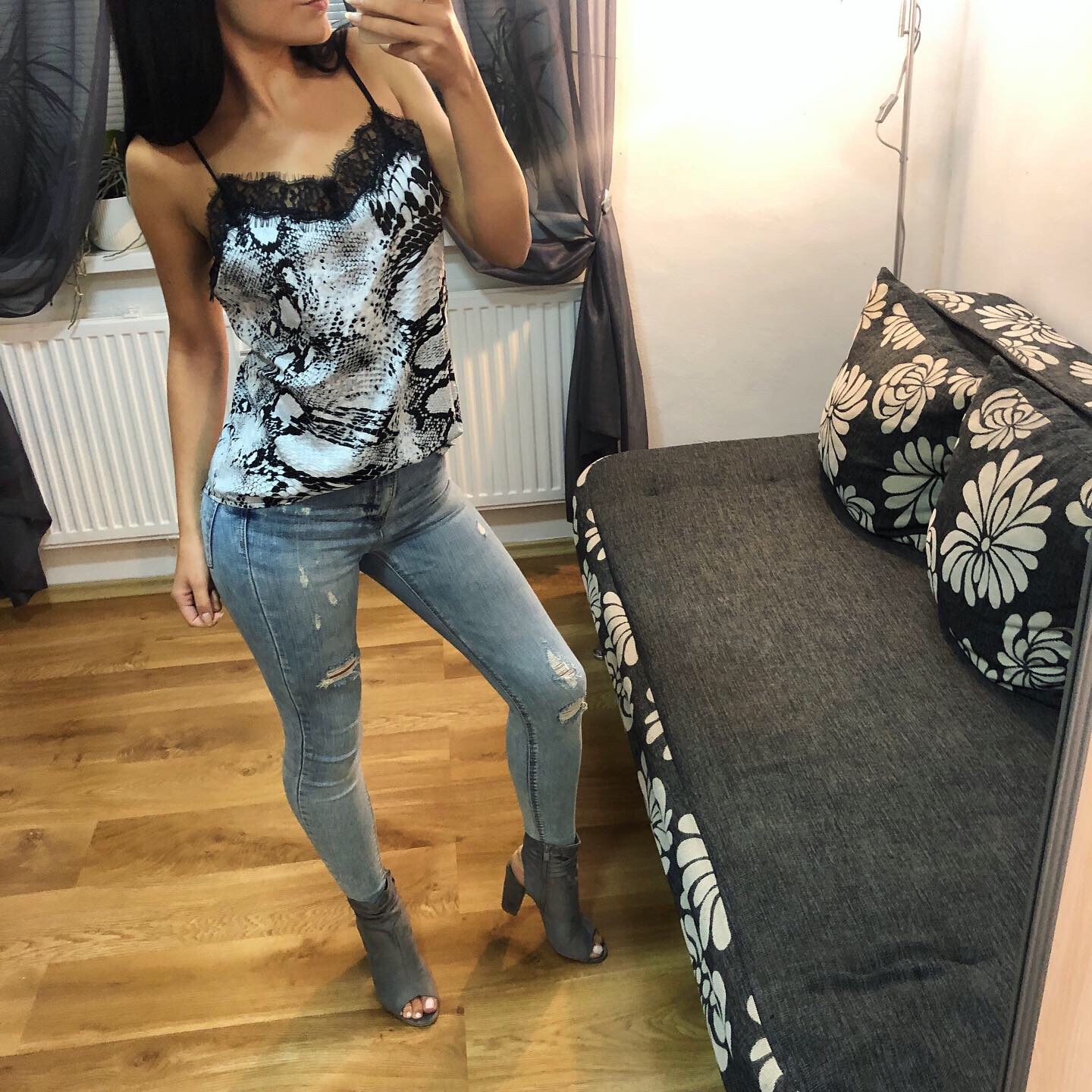 Krásny topik s čipkou a hadím vzorom.