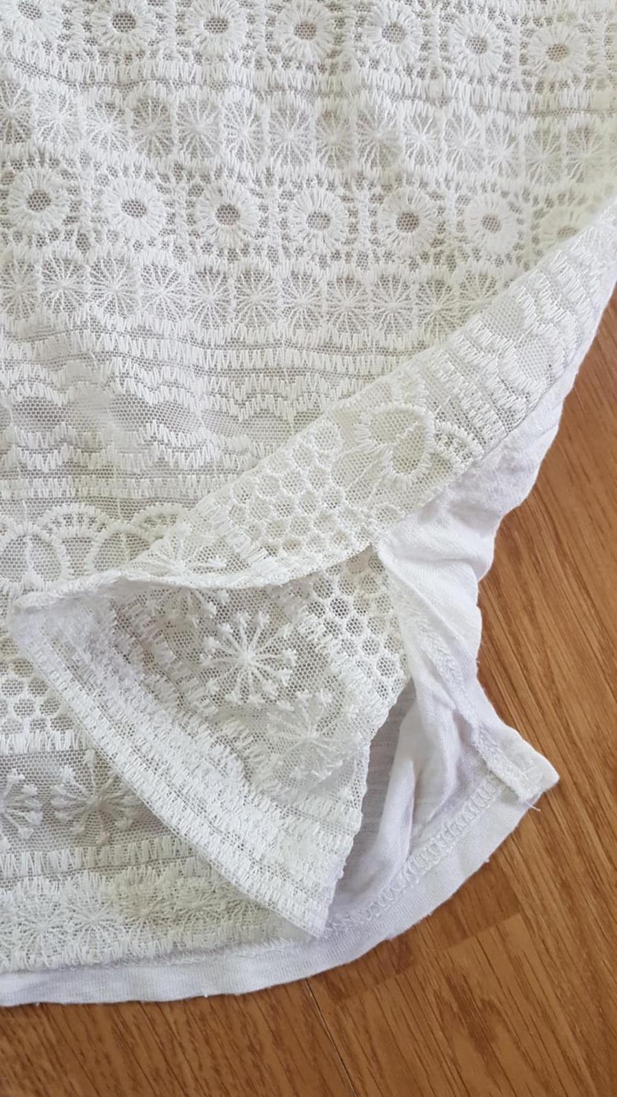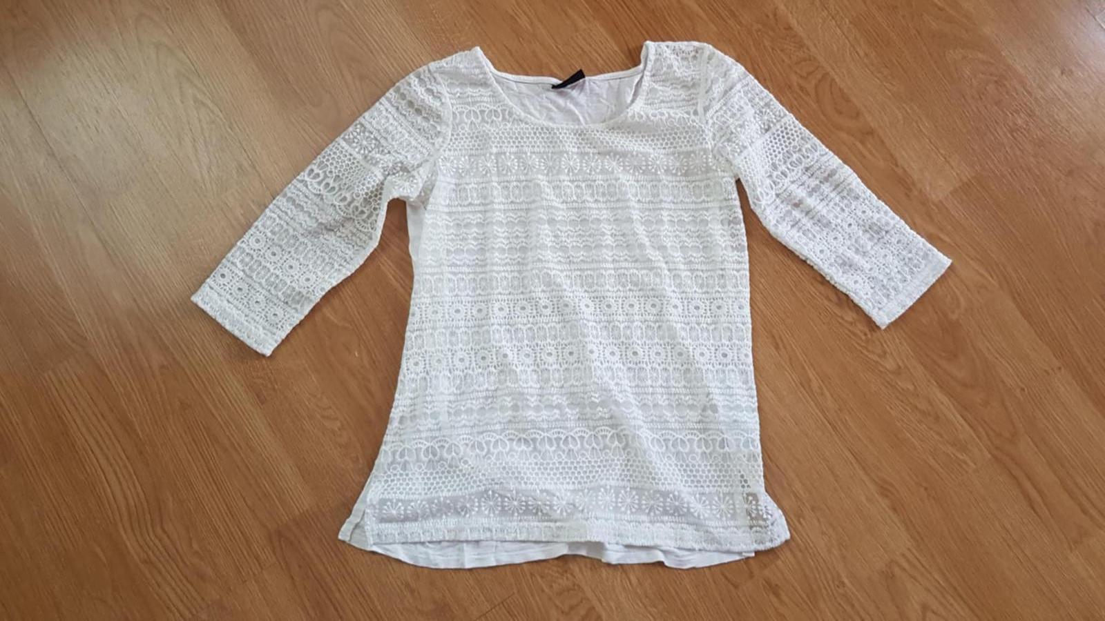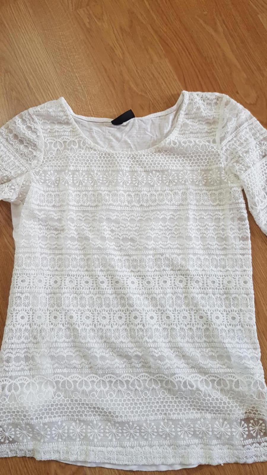 čipkované tričko v predu je transparentné, v zadu bez vzoru, rukávy transparentné. Na bokoch rozparky. Šírka popod paže je 47 x 2 cm, celková dĺžka je 63 cm - merala som cez stred chrbta.