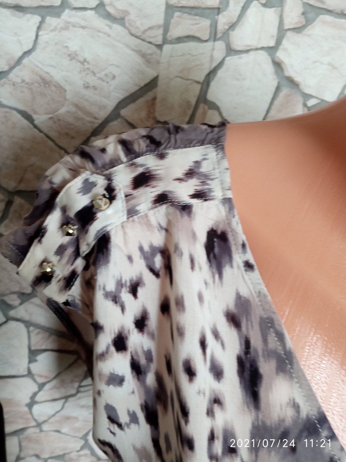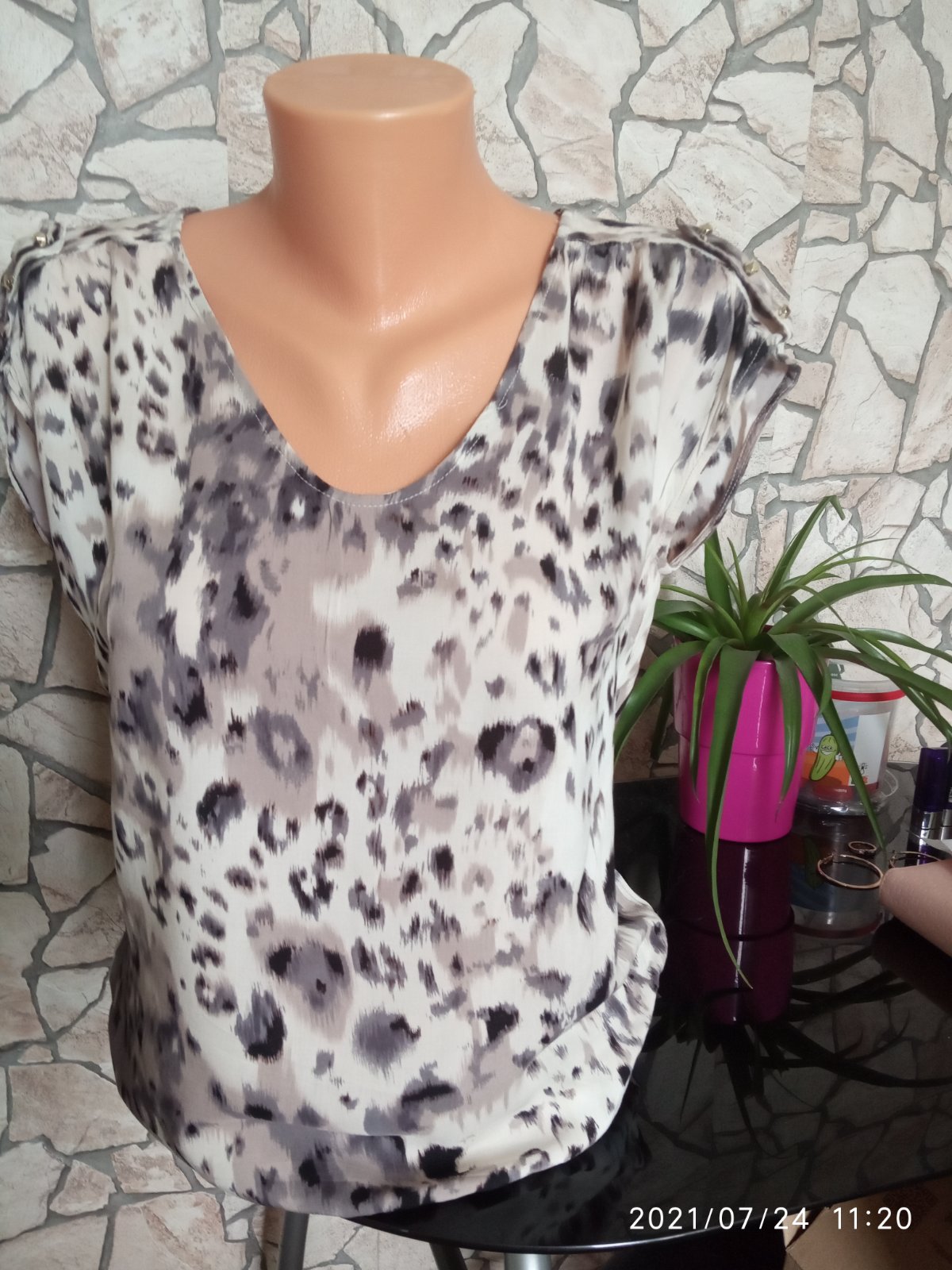 Asi raz oblecene. Tricko ma na bokoch rozparky, prijemny material. Prsia 48cm,dlzka predný diel 85cm,zadný 102cm