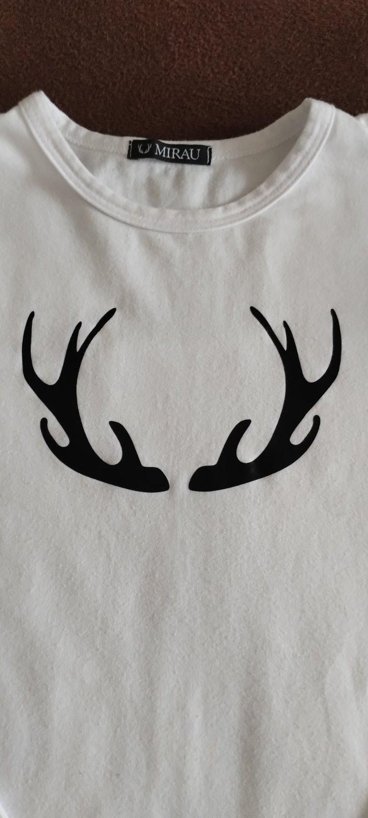 veľmi zaujímavé tričko,na boku sa zaväzuje,čím vytvára pekné riasenie,top vzor,aj na slečny cca 140 veľkosť