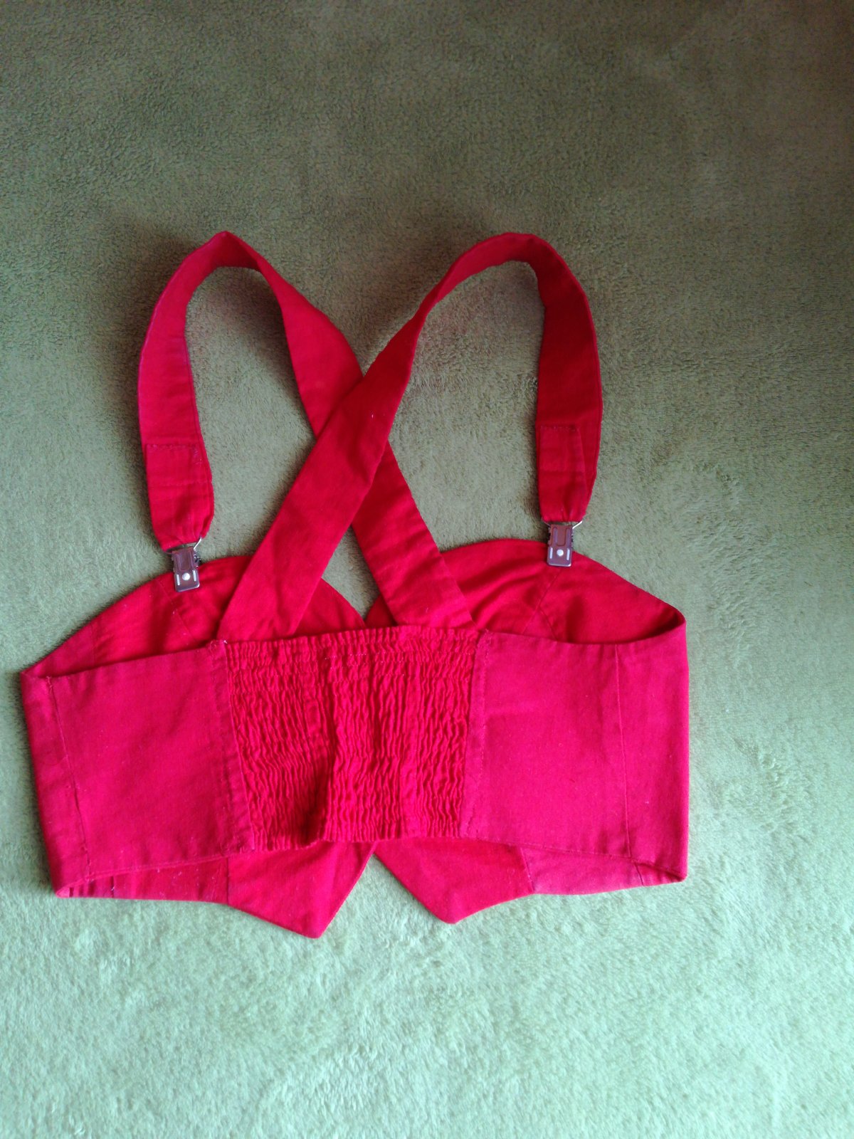Príjený na telo, v zadu do gumičiek, v peknom stave, nepoškodený.