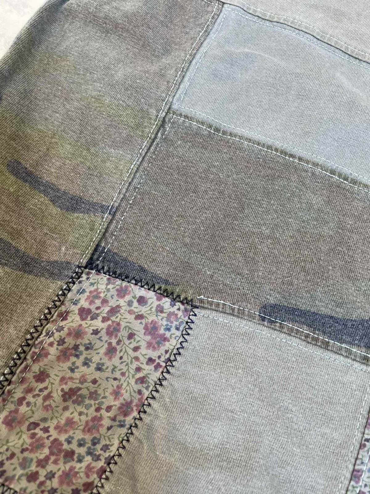 zaujímavé značkové vintage tričko pachworkového spraného obnoseného vzhľadu,anglická značka TED BAKER,farebnou kombináciou podobné maskáčovému,obvod pod pazuchou = 50 x 2 cm, dlžka = 70 cm,vhodné aj pre rybárov,poľovníkov ale aj na bežné nosenie.............