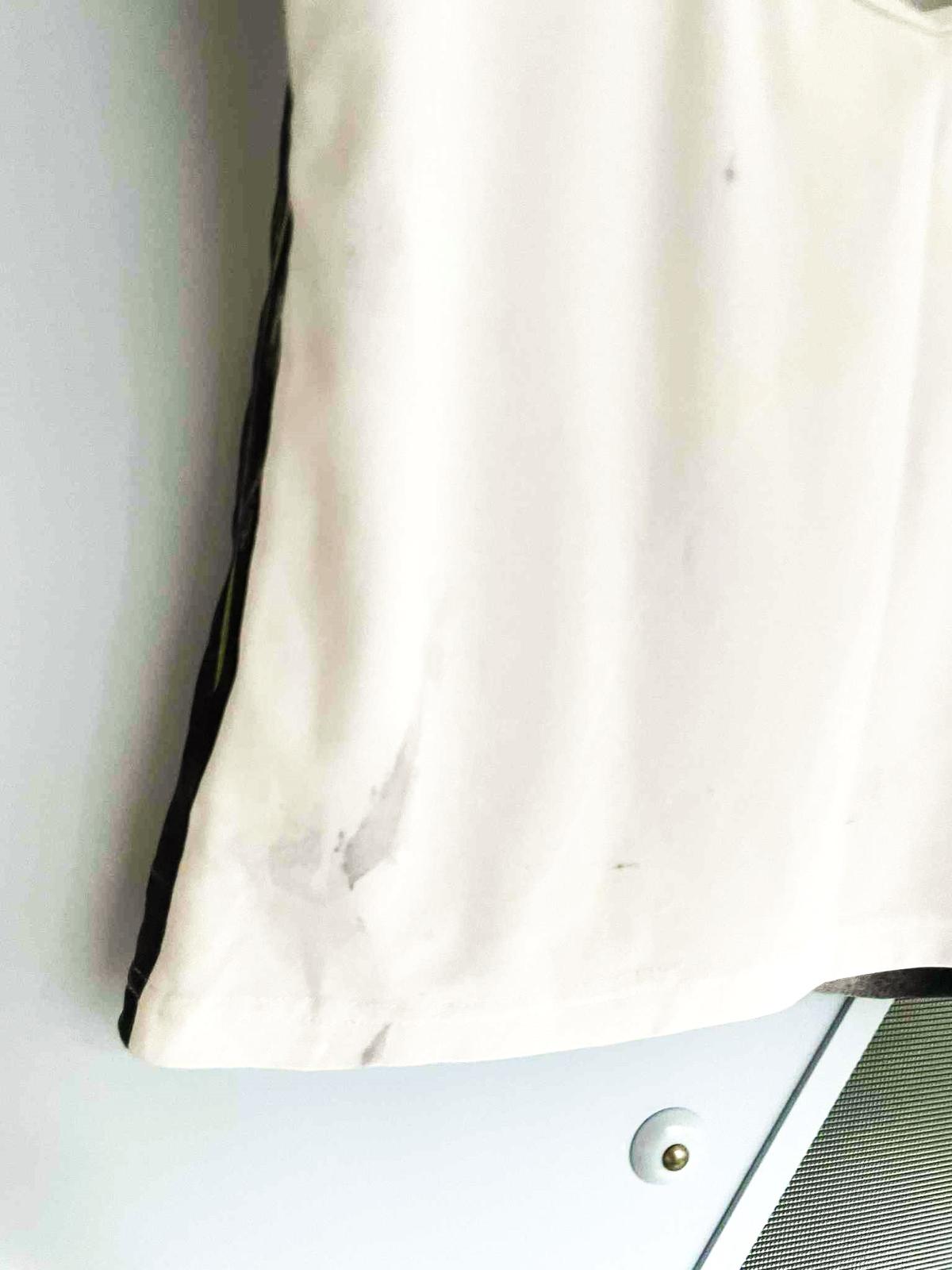 zaujímavé tričko - limitovaná edícia,originál,s kvalitnou potlačou v 100 % stave,materiál = nie bavlna,ale syntetika,vzadu akoby jemne zašpinené,tzv.obnosený vzhľad = viď fotky,obvod prsia = 41 x 2 cm, dlžka od pazuchy dole = 38 cm,vzadu výstrih siaha v úrovni asi 4 cm pod pazuchou.....veľkosť 34/36