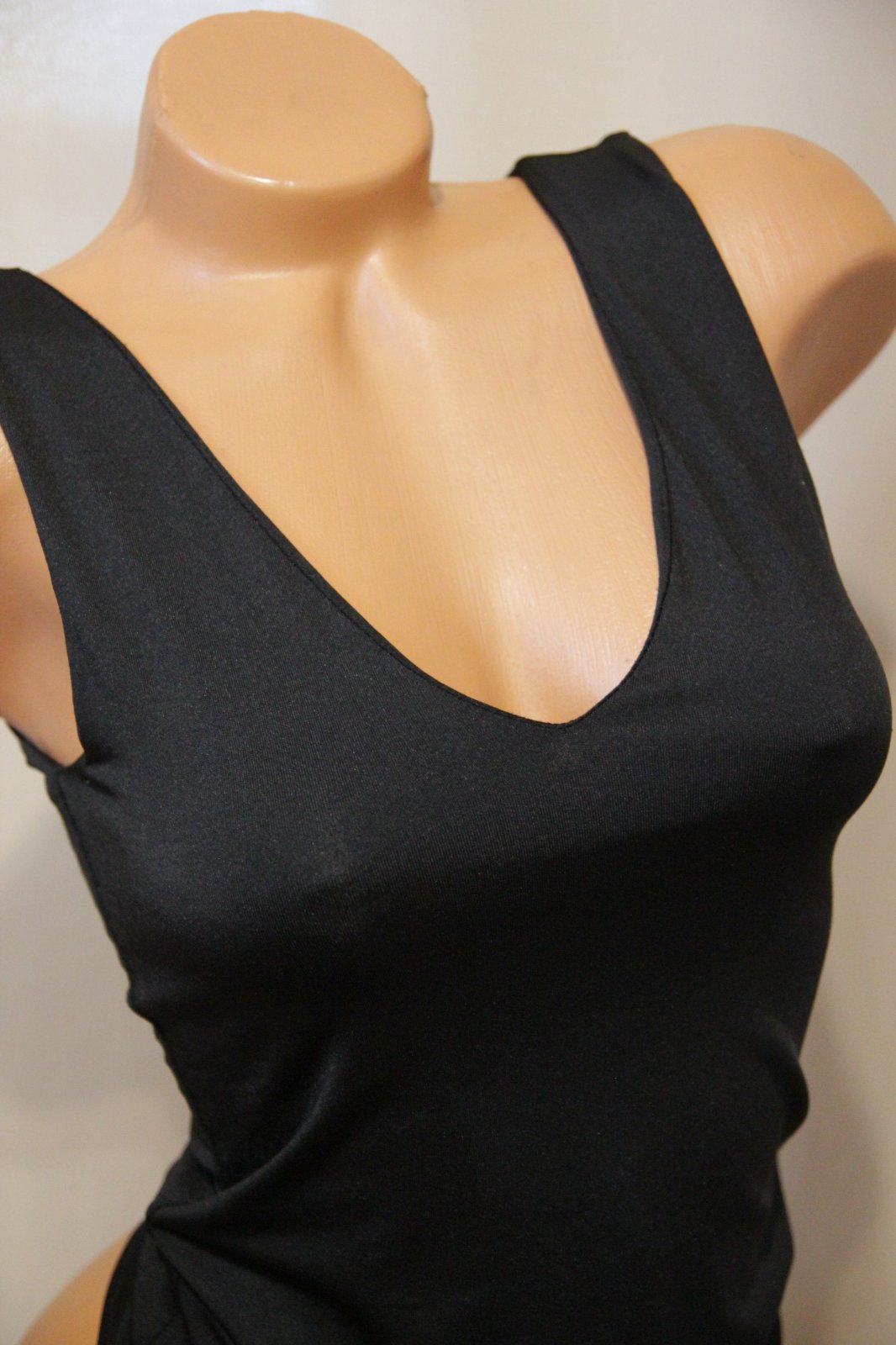 Čierny body top s výstrihom na chrbte. Body je podšité.