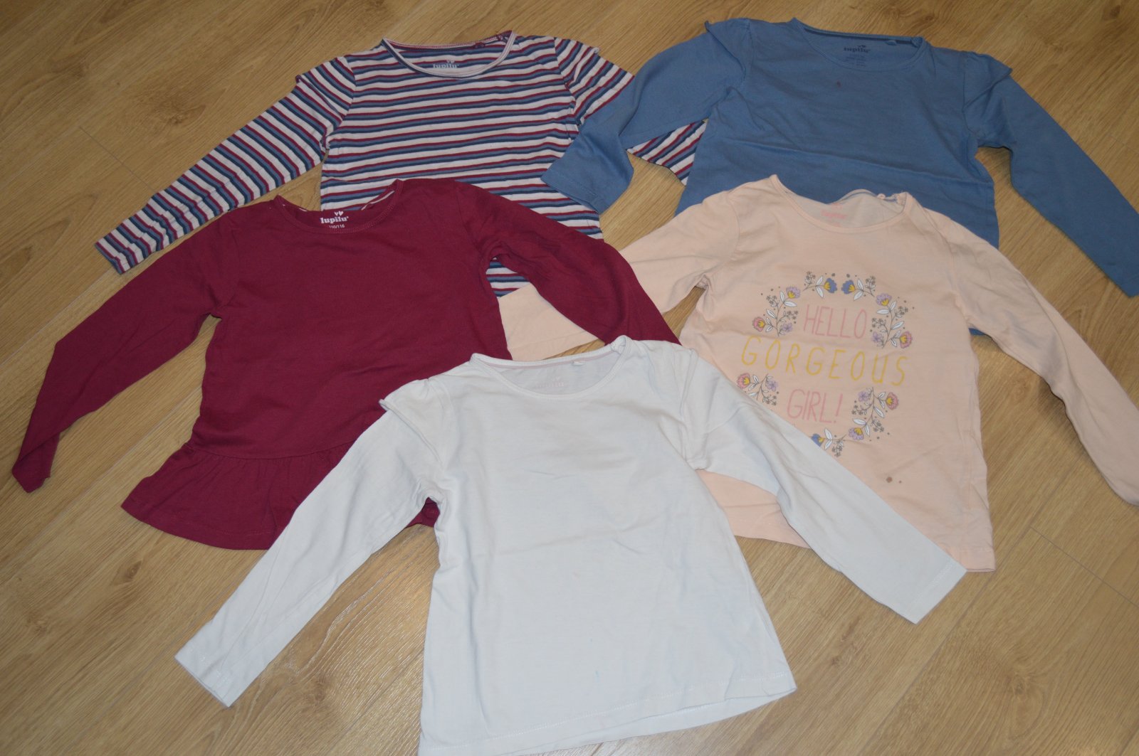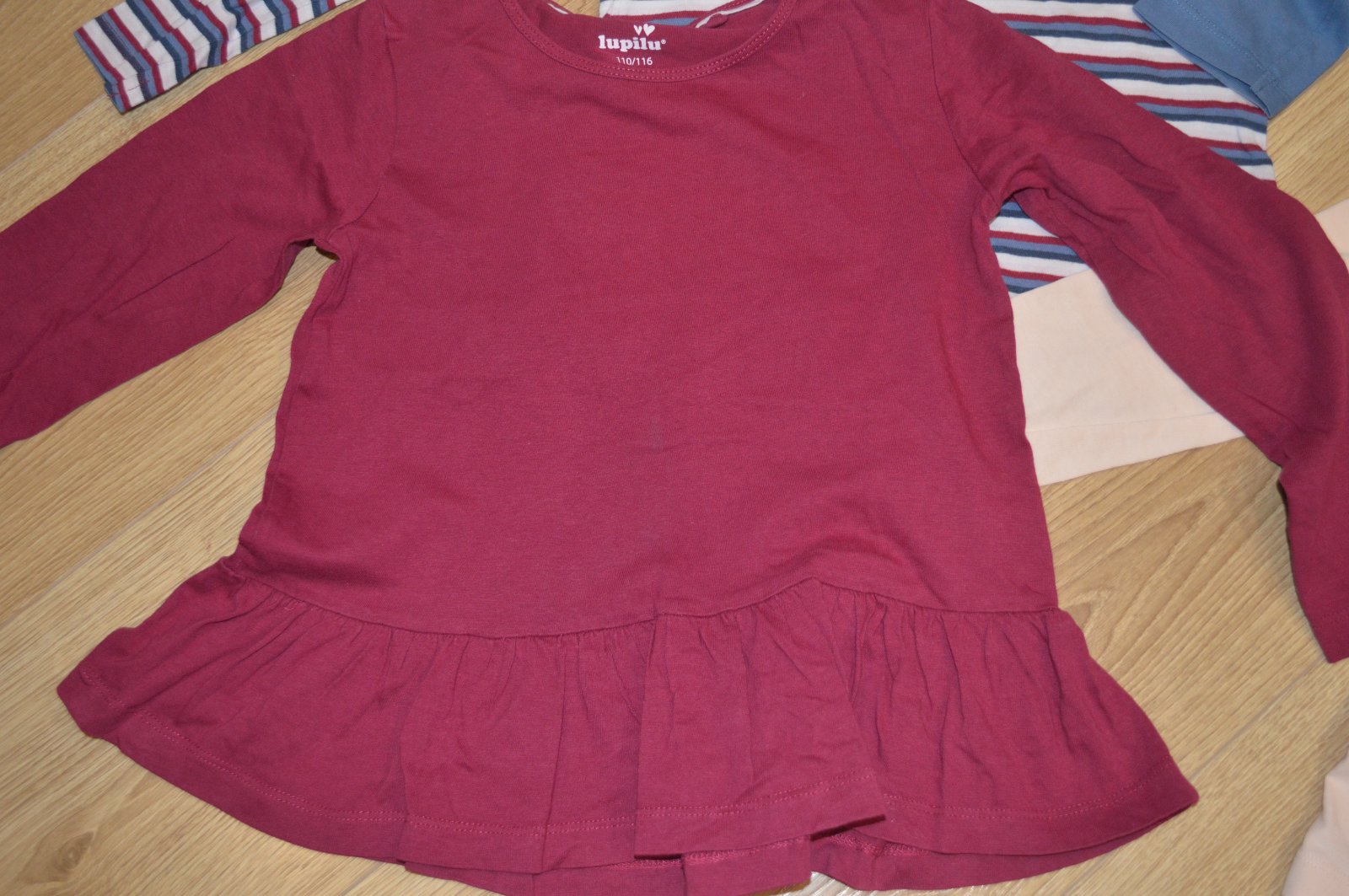 5x tričko s dlhými rukávmi, veľkosť 110/116, nosené doma, sú na nich jemné fľaky
