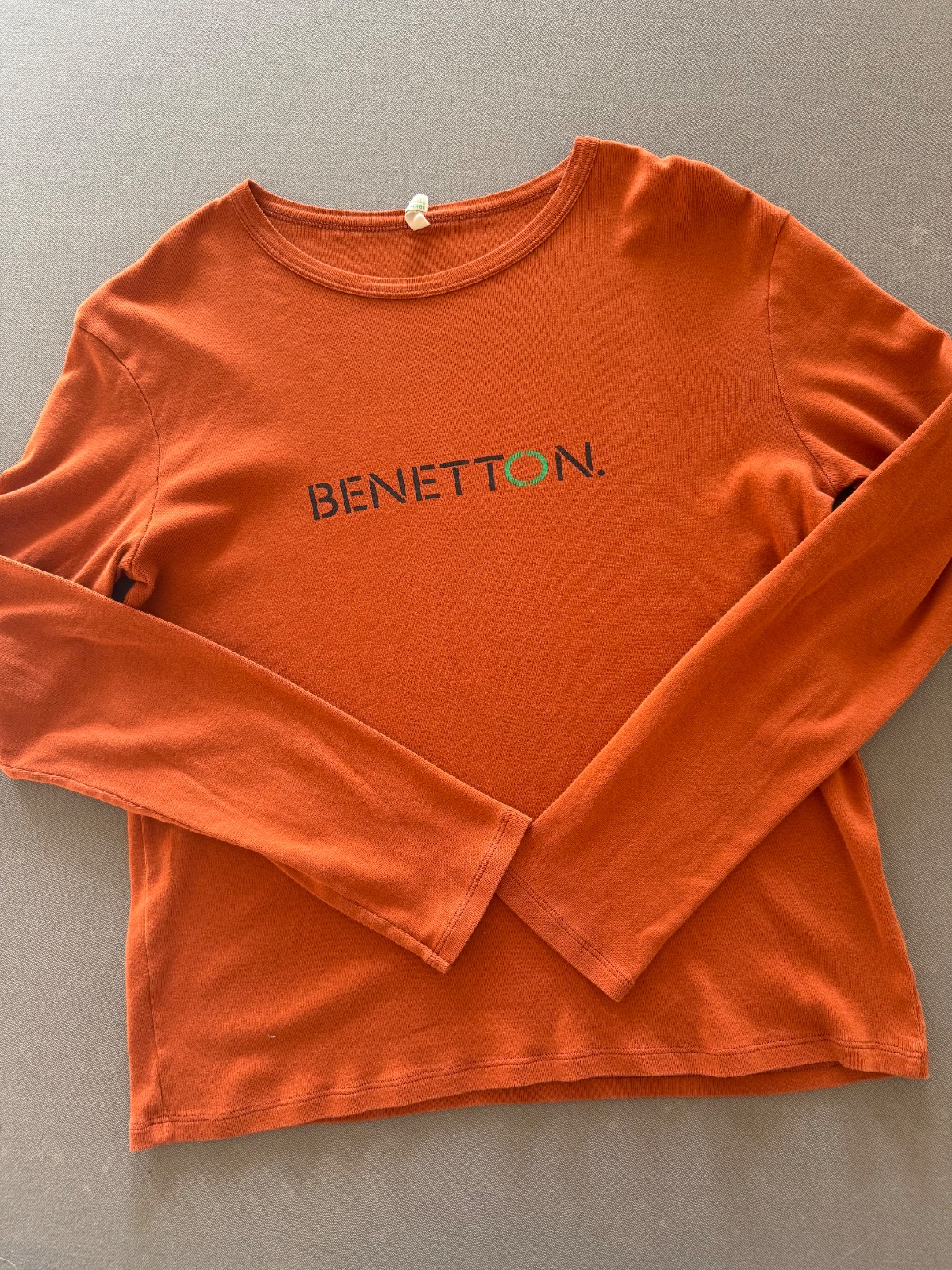Škoricovy natelnik Benetton veľkosť cca 170. Celková dĺžka 56cm. Dĺžka rukaviku 55cm. Sirka cez hrudnik 45cm.