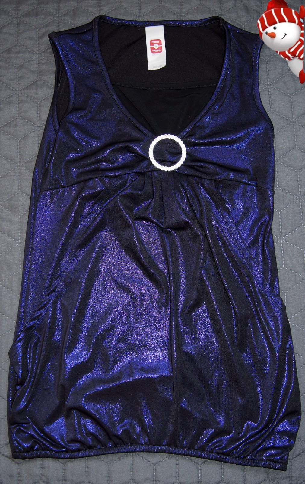 Veľkosť je dvojčíslo 146 - 152. Tričko na ramienka má prišité strieborné flitre.