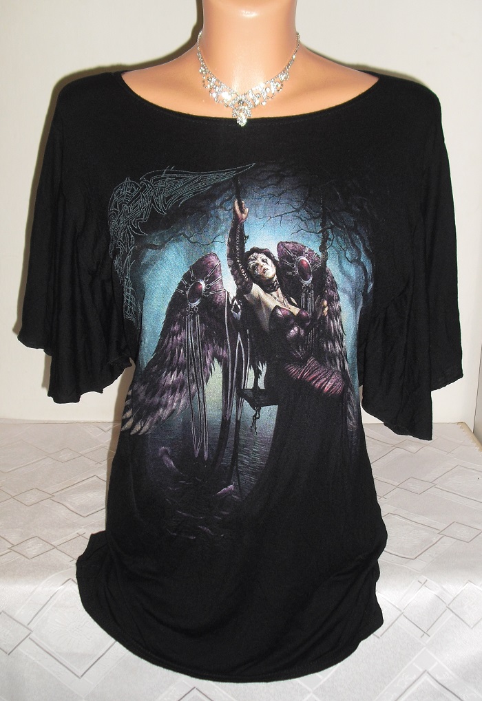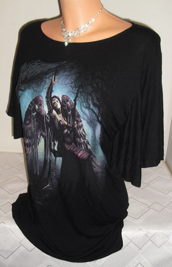 predam nadhernu luxusnu tuniku, motylie rukavy, goticka, metal spiraldirect znackova, jemnucky material, nepichlava, bavlnena, prijemna na telo, velkost uvedena xl, ale ide na m. m/l. nosi sa navolno padavo na tele. je tmavo cierna, nosena ale paradu niekomu urcite urobi kamkolvek. sirka 47 cm x 2 merane klude, natiahne sa este, dlzka 70 cm.