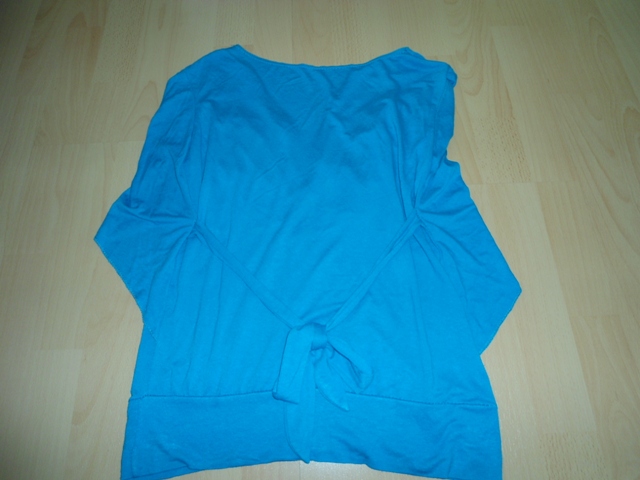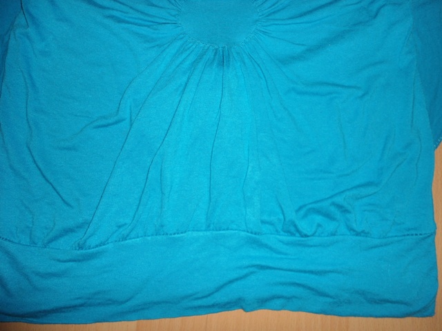 167k. tyrkysove volne damske tricko, balvna, lahky letny material, nosene, vzadu stahovanie, velk. M, elasticke, dlzka 56cm, rukav 39cm, cez prsia 49x2cm, este posluzi
