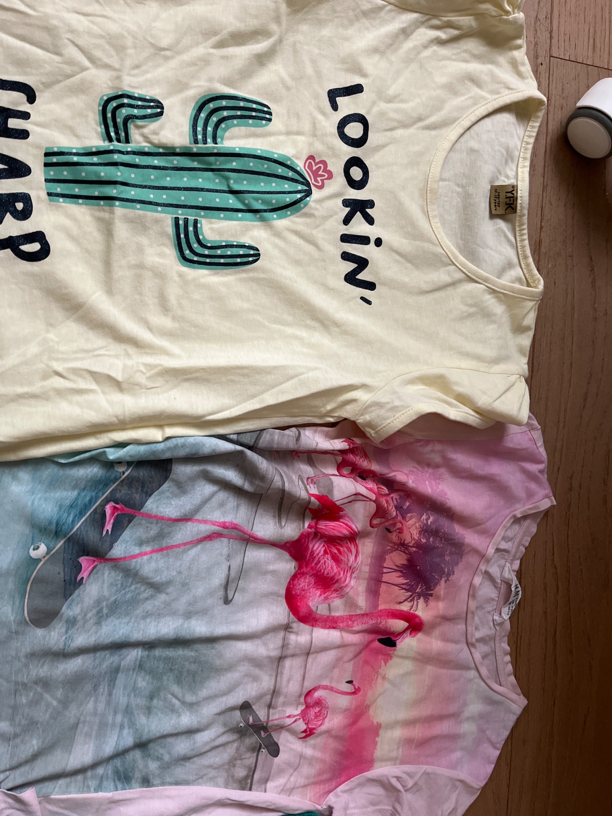 Tričko výborný stav , jedno 2€, dve spolu 3€, tri po 1€, žlté tiez číslo 146/152