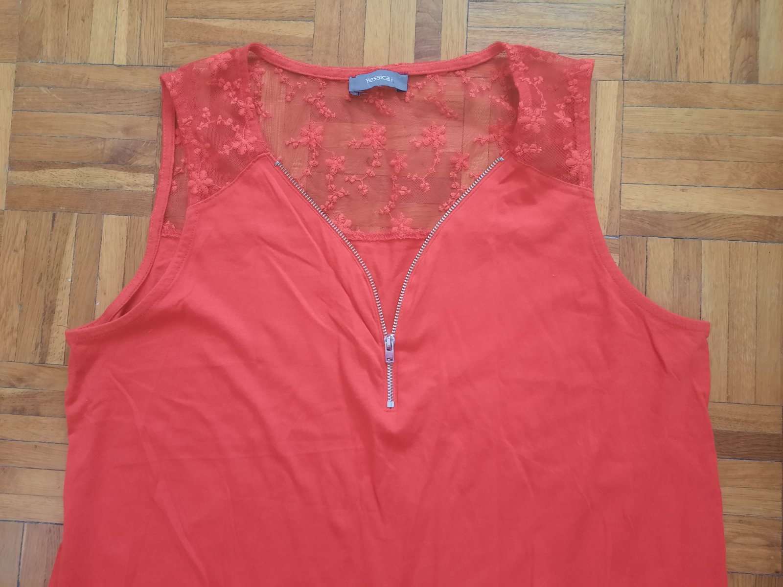 Elegantné tielko, letný top. Sýta červená farba. Veľmi príjemný materiál, nie tenký, nehoremný, ale naopak taký kvalitný padavý. Topík je vhodný aj na príležitosť, s nohavicami, pod sakom pekne uká...