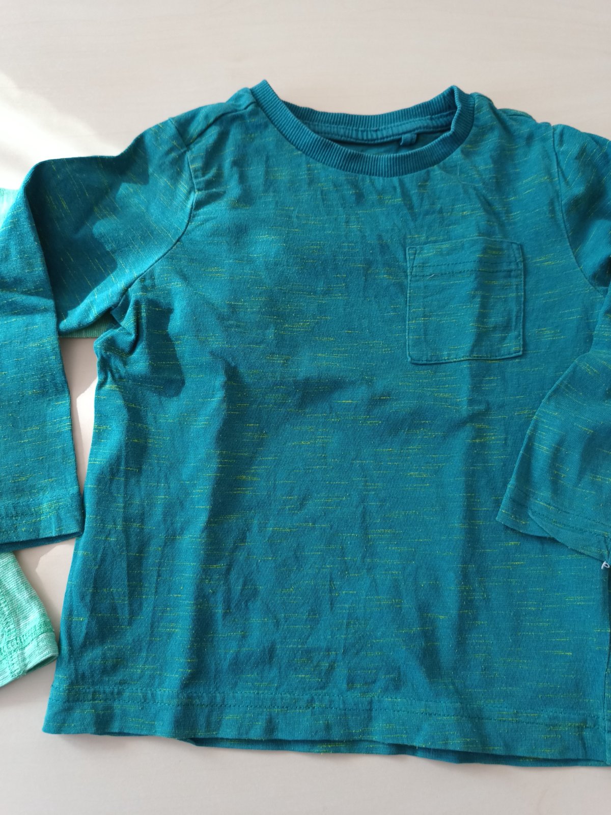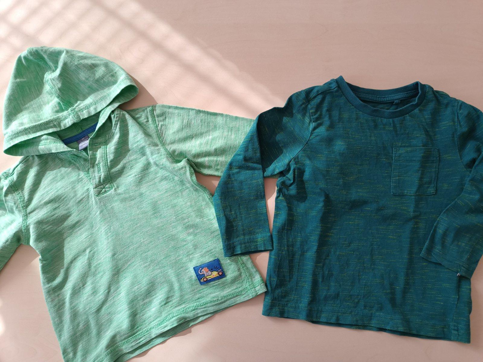 obe tričká v dobrom stave, na bledozelenom tričku na rukáve zafarbené, nejde to vyprať