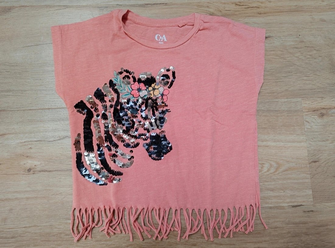 Dievčenské tričko Materiálové zloženie: 65% Polyester, 35% Bavlna Farba: neónovo-pomarančová 98, 104 Výrobce: C&A 5333/98 5333/104