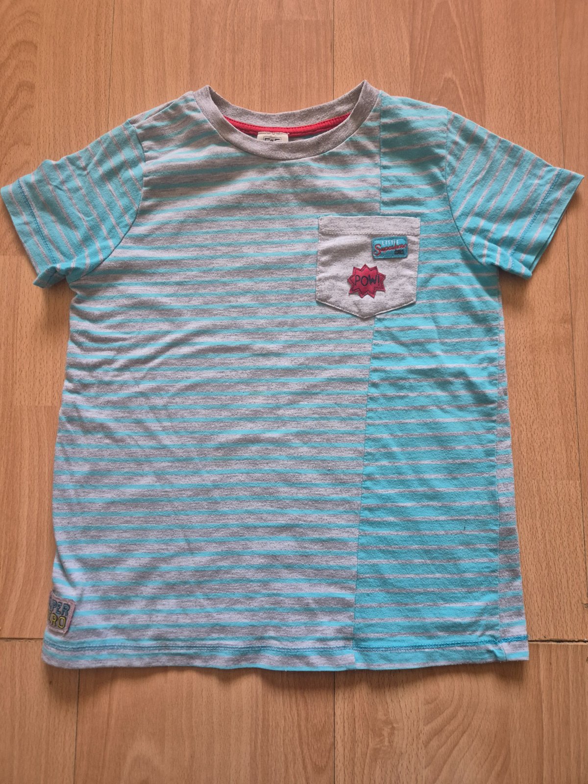 Predám pekné prúžkované šedomodré tričko vel.122,značka F&F,pekný stav,cena 1,20€