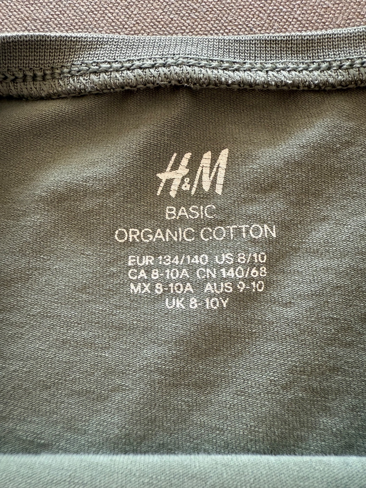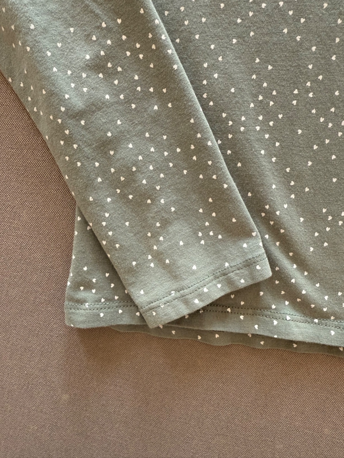 Natelnik kaki H&M veľkosť 134/140 s malinkými srdiečkami. Celková dĺžka 48cm. Dĺžka rukaviku 47cm.