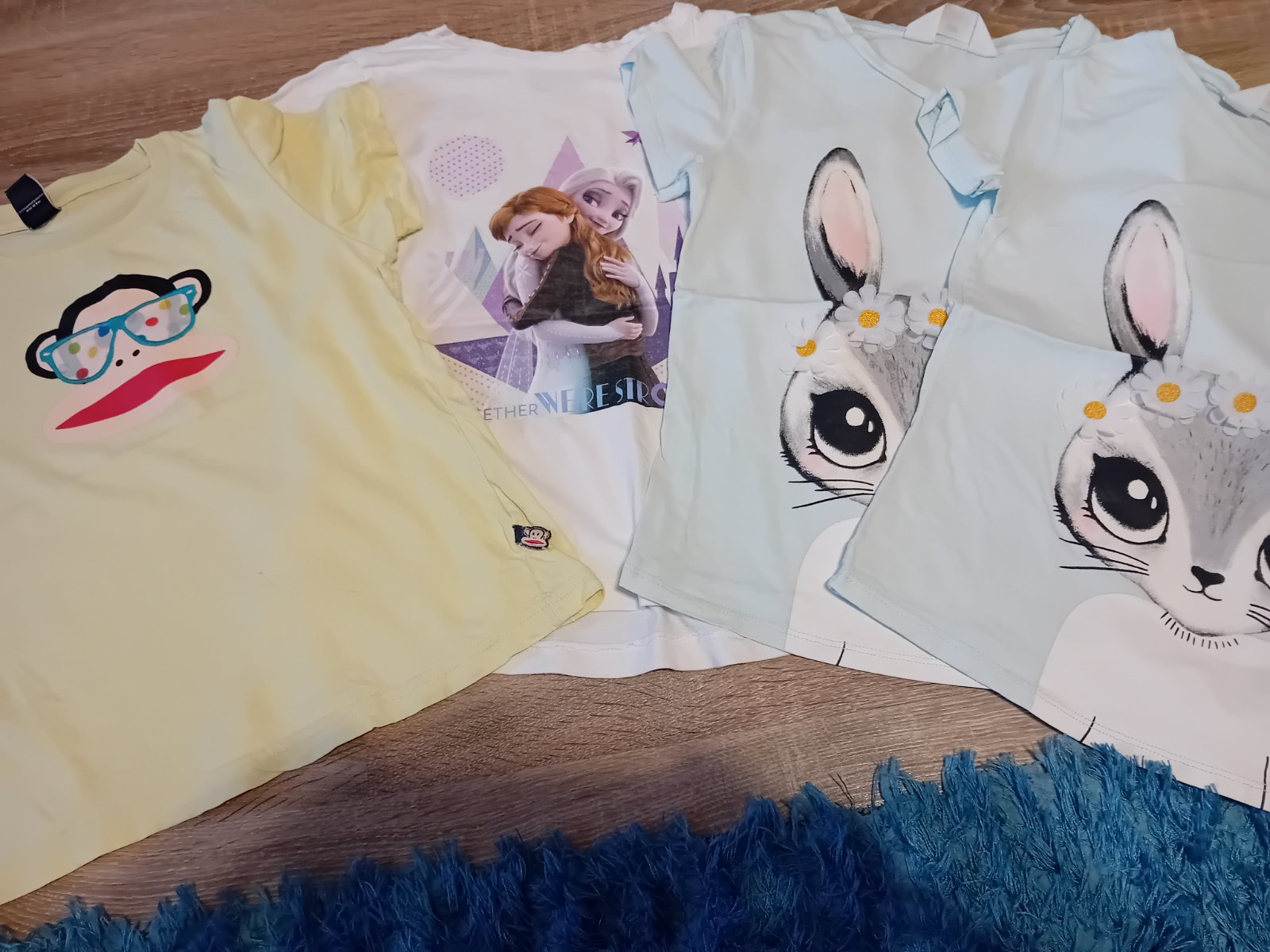 Predám 4 ks dievčenských tričiek s krátkym rukávom - značky HandM, Takko a Paul Frank. Veľkosť 122/128.