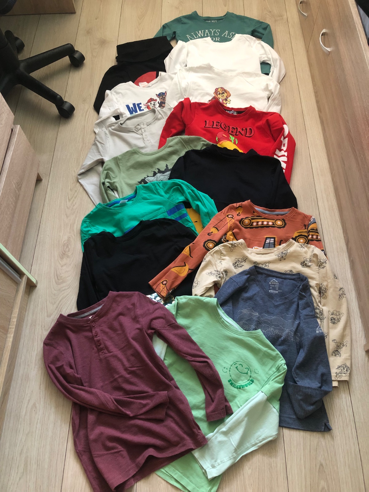 Všetky tricka sú v nosenom ale veľmi peknom stave. Niektoré trošku viac,niektoré skoro vôbec. Všetky sú bez dier,flakov.