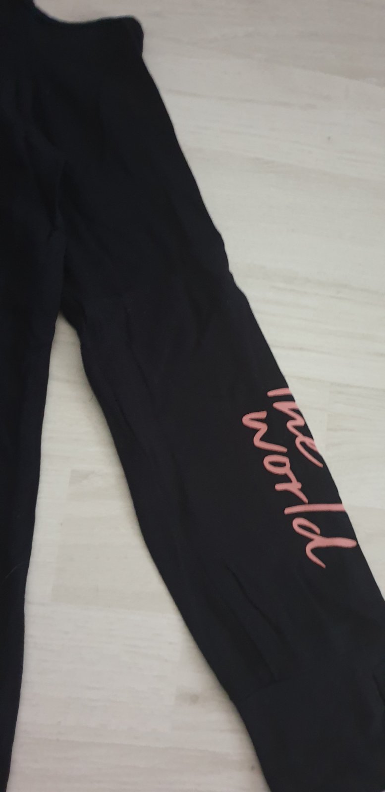 Vo velmi peknom malonosenom stave+gratis legíny bohuzial su dierkou na kolene.Tričko nie je vyblednuté,pekná syta farba.