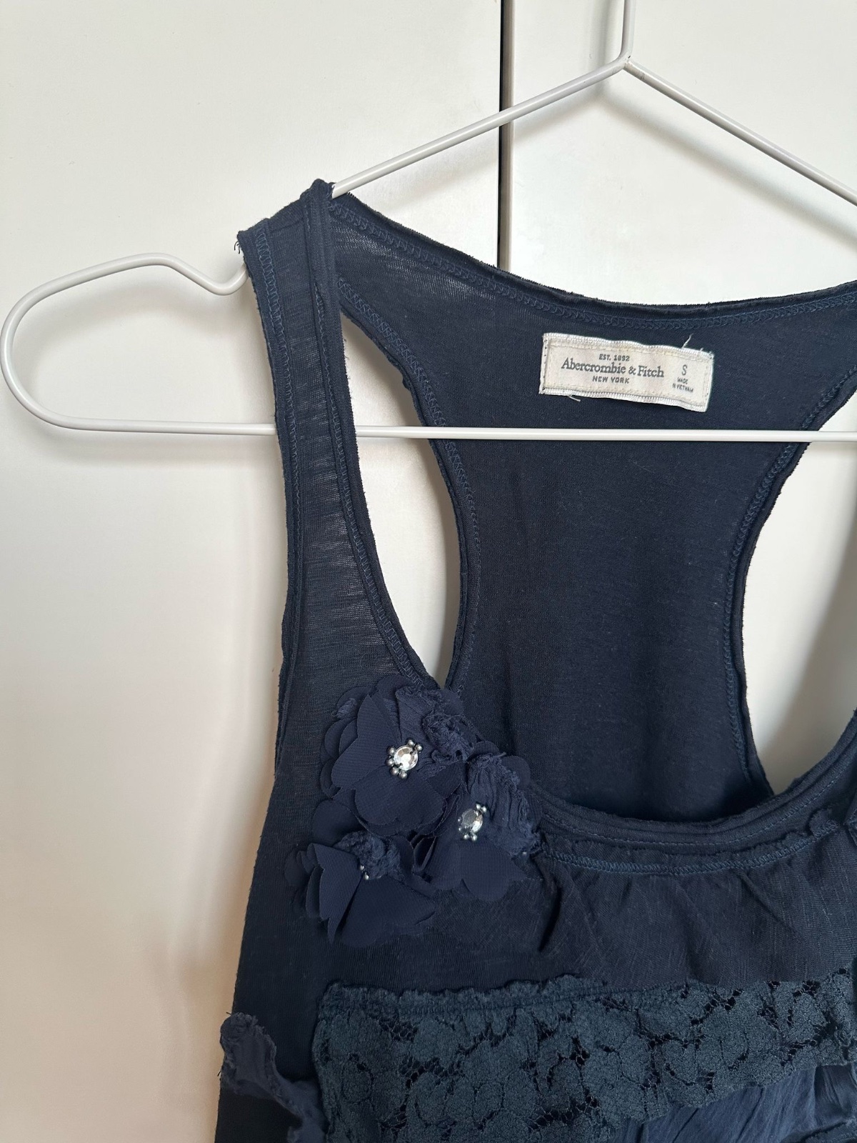 Nosený modry volánikový top veľkosti S značky Hollister, bez poškodenia