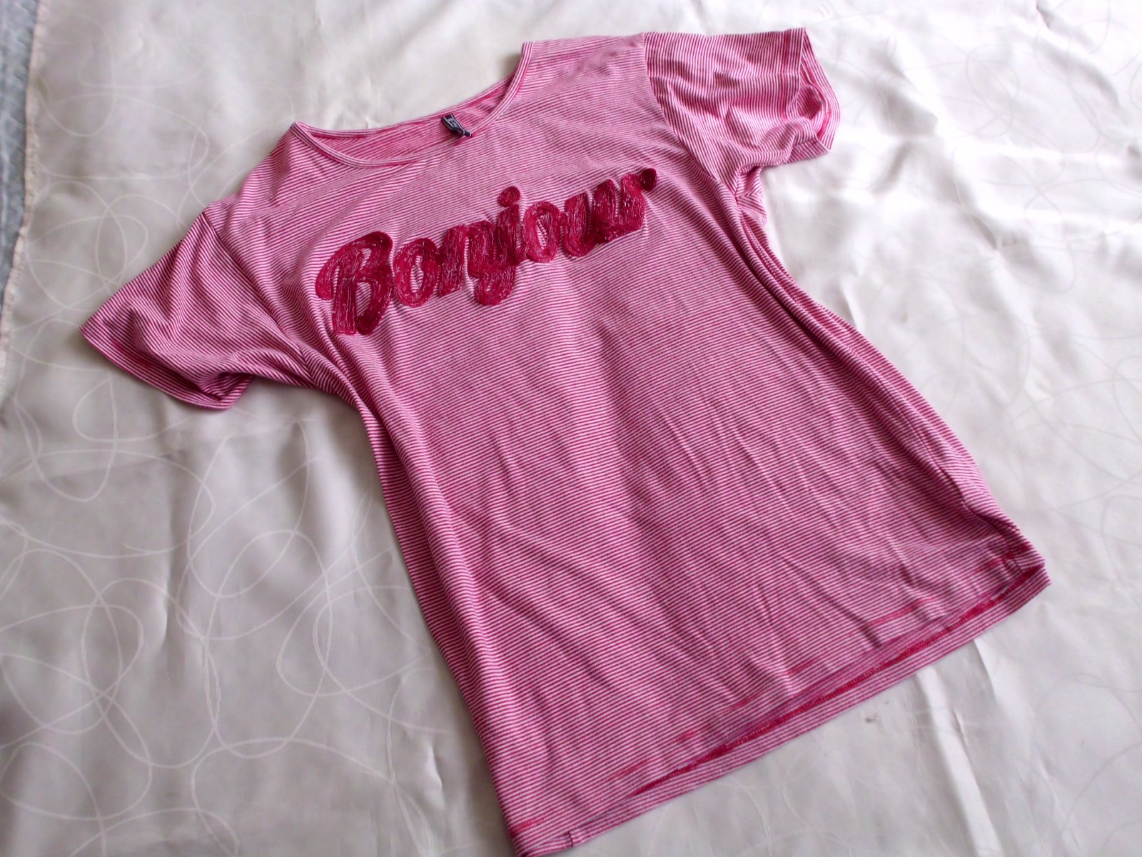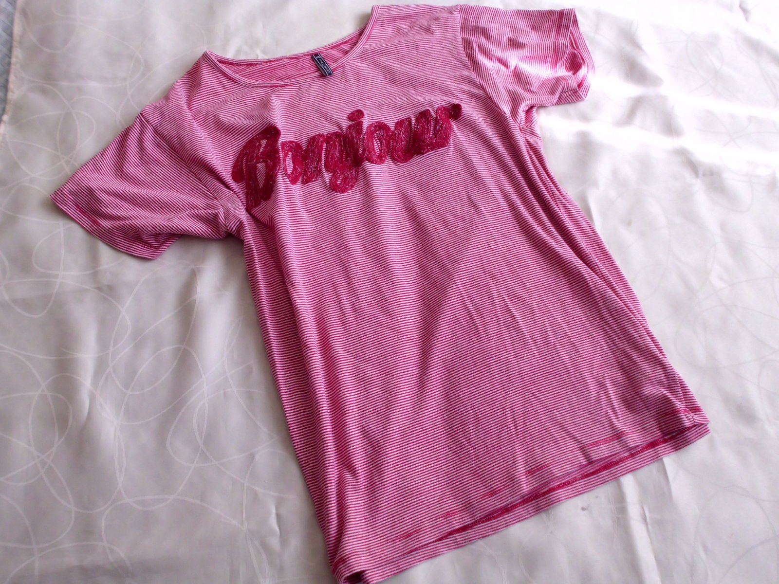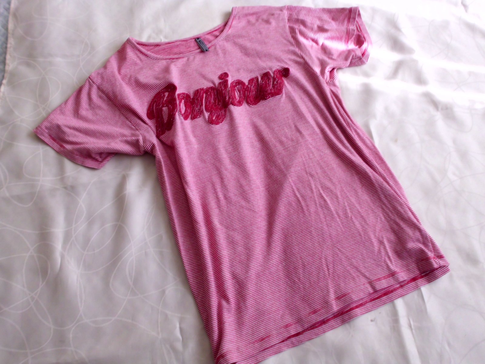Predám dámske (uni) tričko Free Quent vel. XS ale aj na M, L, šírka 51 cm, dĺžka 72 cm , rukáv 17 cm, príjemný pružný materiál , farba červenoružový s bielou pásik, super top stav