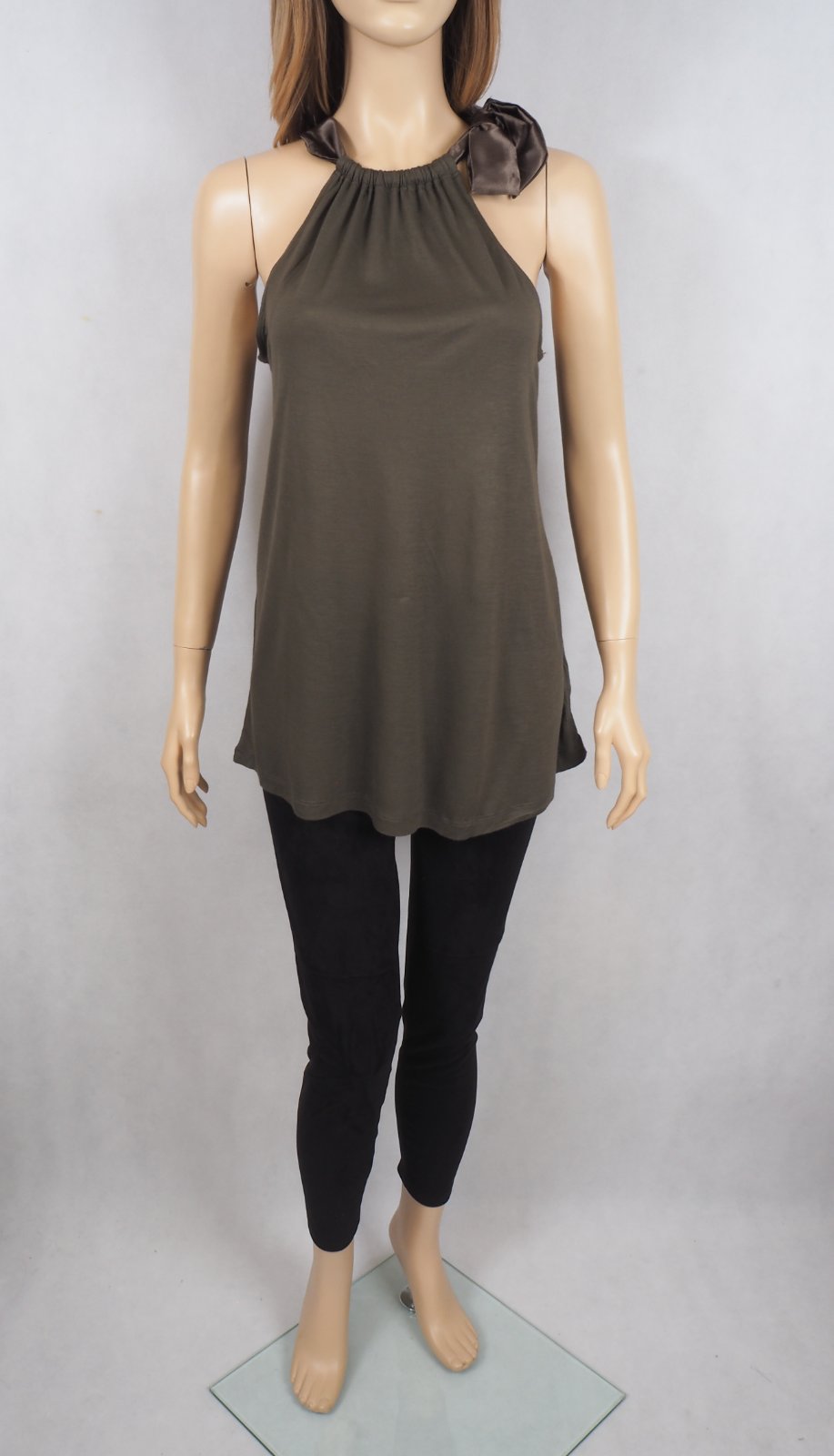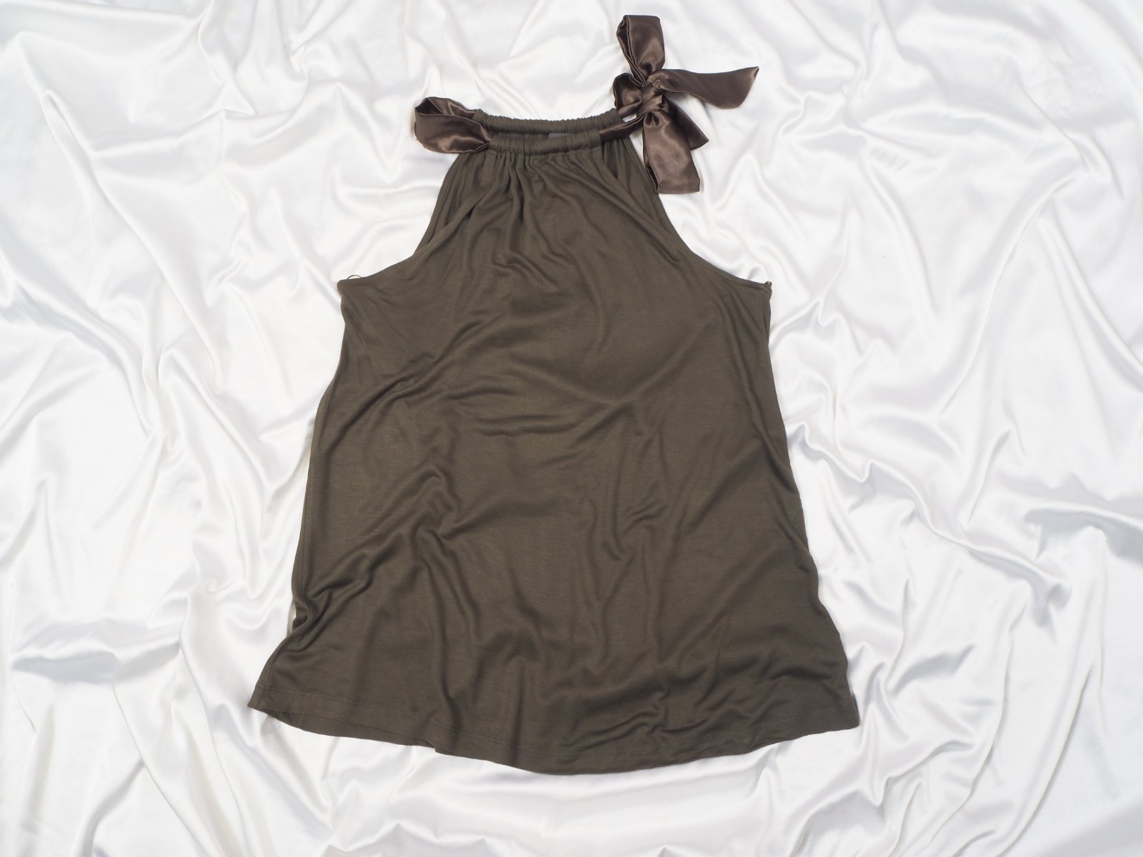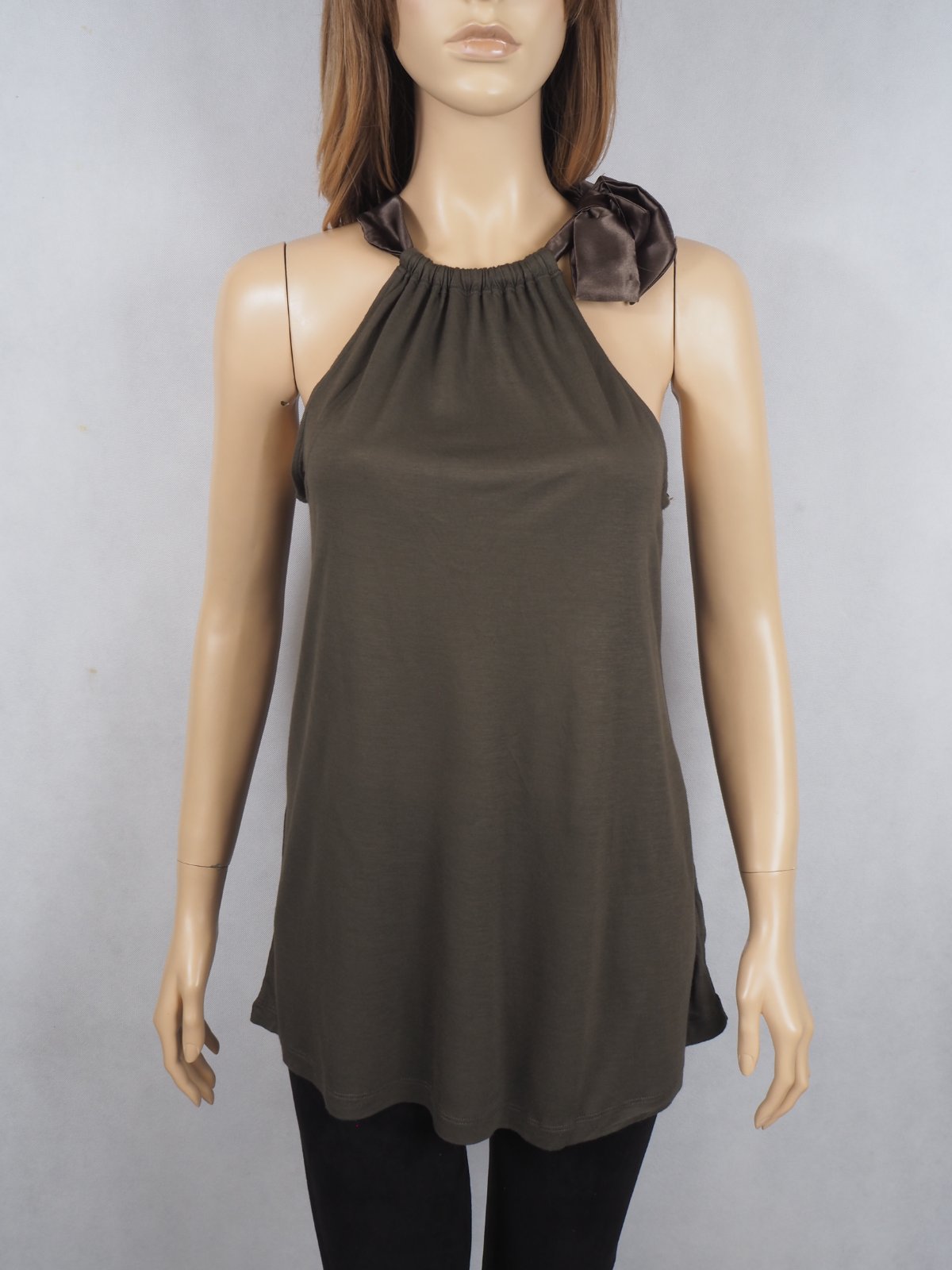Kvalitný dámsky úpletový top, so saténovou mašľou, materiál 100% viskóza, super stav.