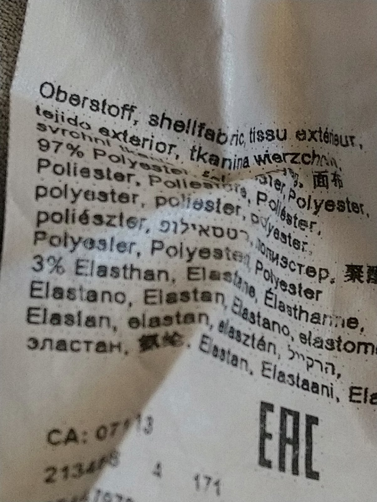 príjemný kvalitný materiál, zloženie: 97 % polyester, 3 % elastan,